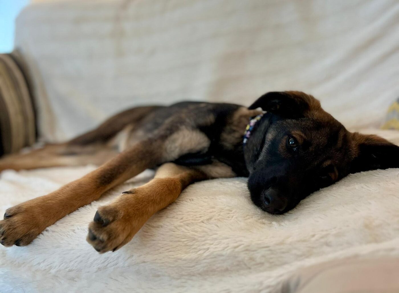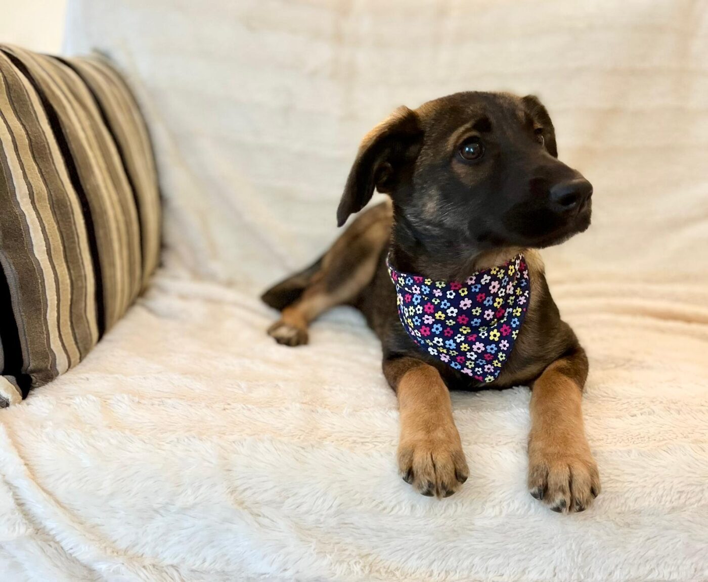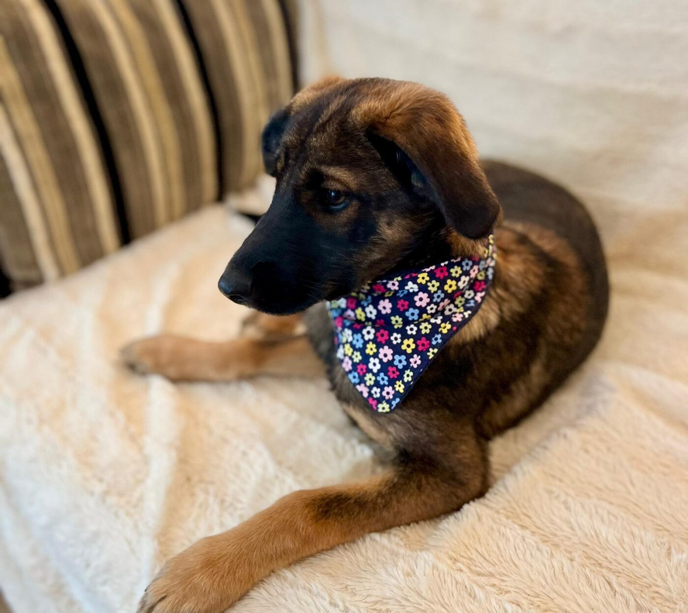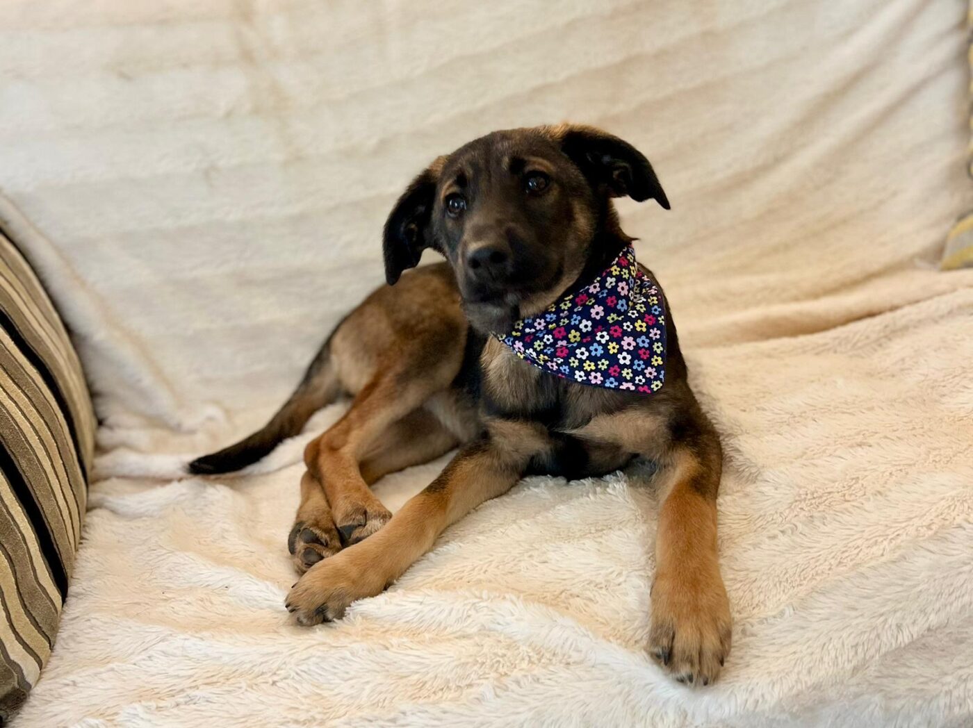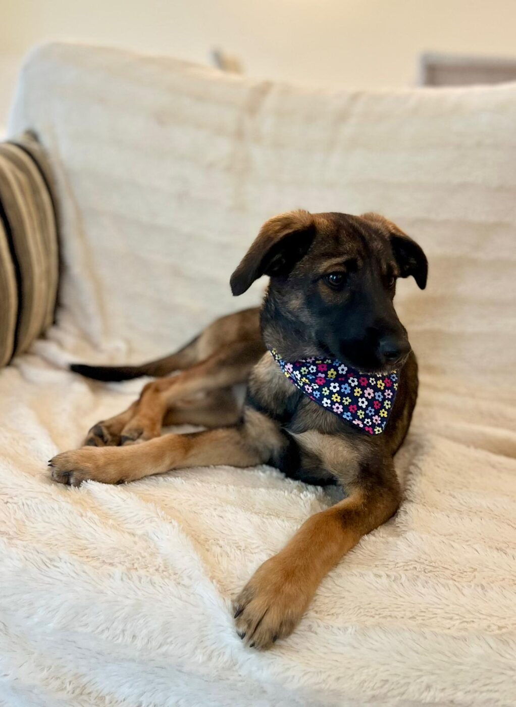 Inmiddels zijn de pups uitgegroeid tot superknappe, stabiele jonge honden die klaar zijn voor hun eigen baasje. Aika is daar een prachtig voorbeeld van. Ze is sociaal, lief en aanhankelijk, zonder opdringerig te zijn. Ze zoekt contact op een prettige, rustige manier en voelt zich snel op haar gemak bij zowel mensen als andere honden. Binnen kwam ze snel tot rust en liet ze zien hoe ontspannen ze kan zijn: tevreden samen slapen, dichtbij maar in balans.