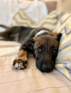 Inmiddels zijn de pups uitgegroeid tot superknappe, stabiele jonge honden die klaar zijn voor hun eigen baasje. Ailin is daar een prachtig voorbeeld van. Ze is sociaal, lief en aanhankelijk, zonder opdringerig te zijn. Ze zoekt contact op een prettige, rustige manier en voelt zich snel op haar gemak bij zowel mensen als andere honden. Binnen kwam ze snel tot rust en liet ze zien hoe ontspannen ze kan zijn: tevreden samen slapen, dichtbij maar in balans.