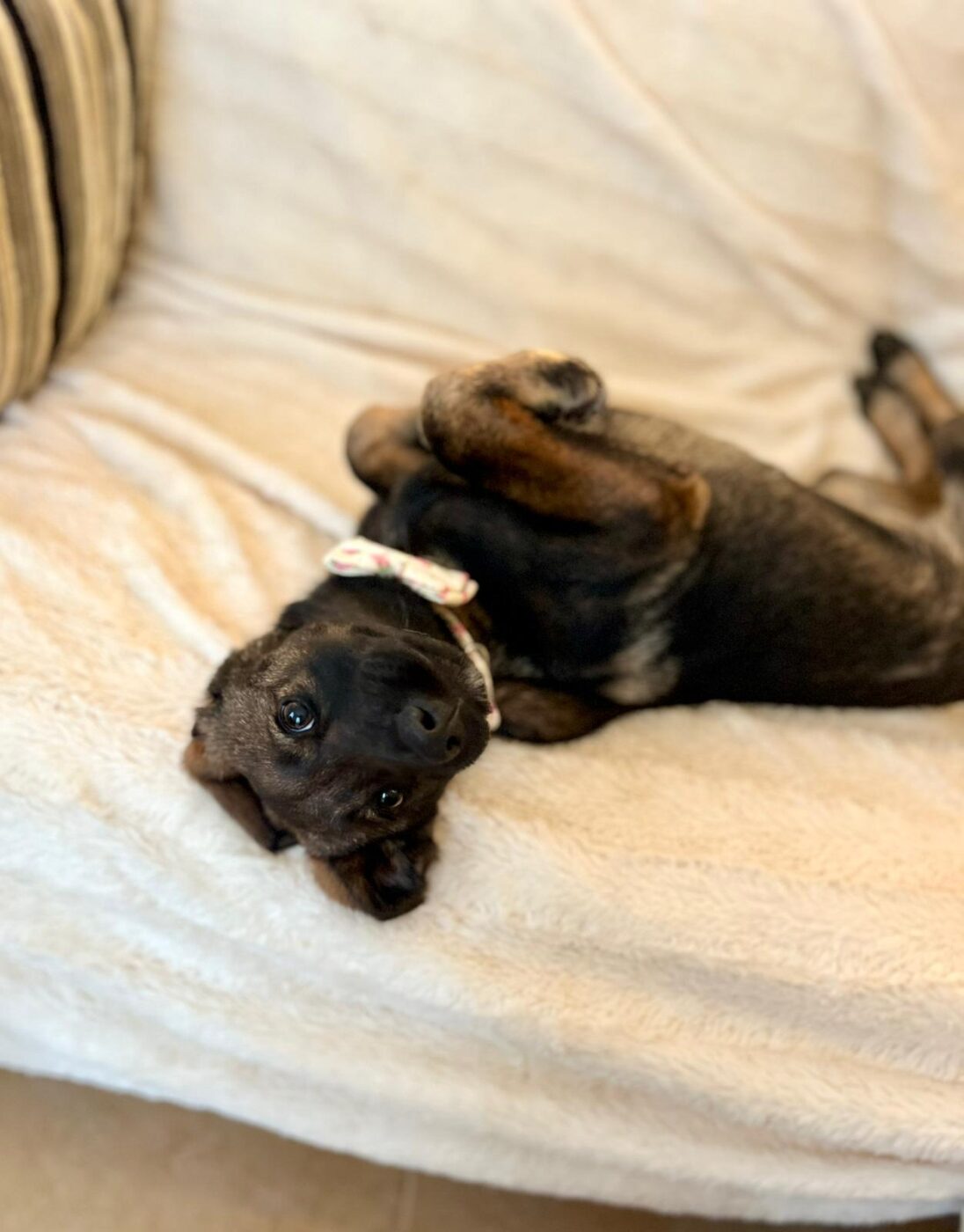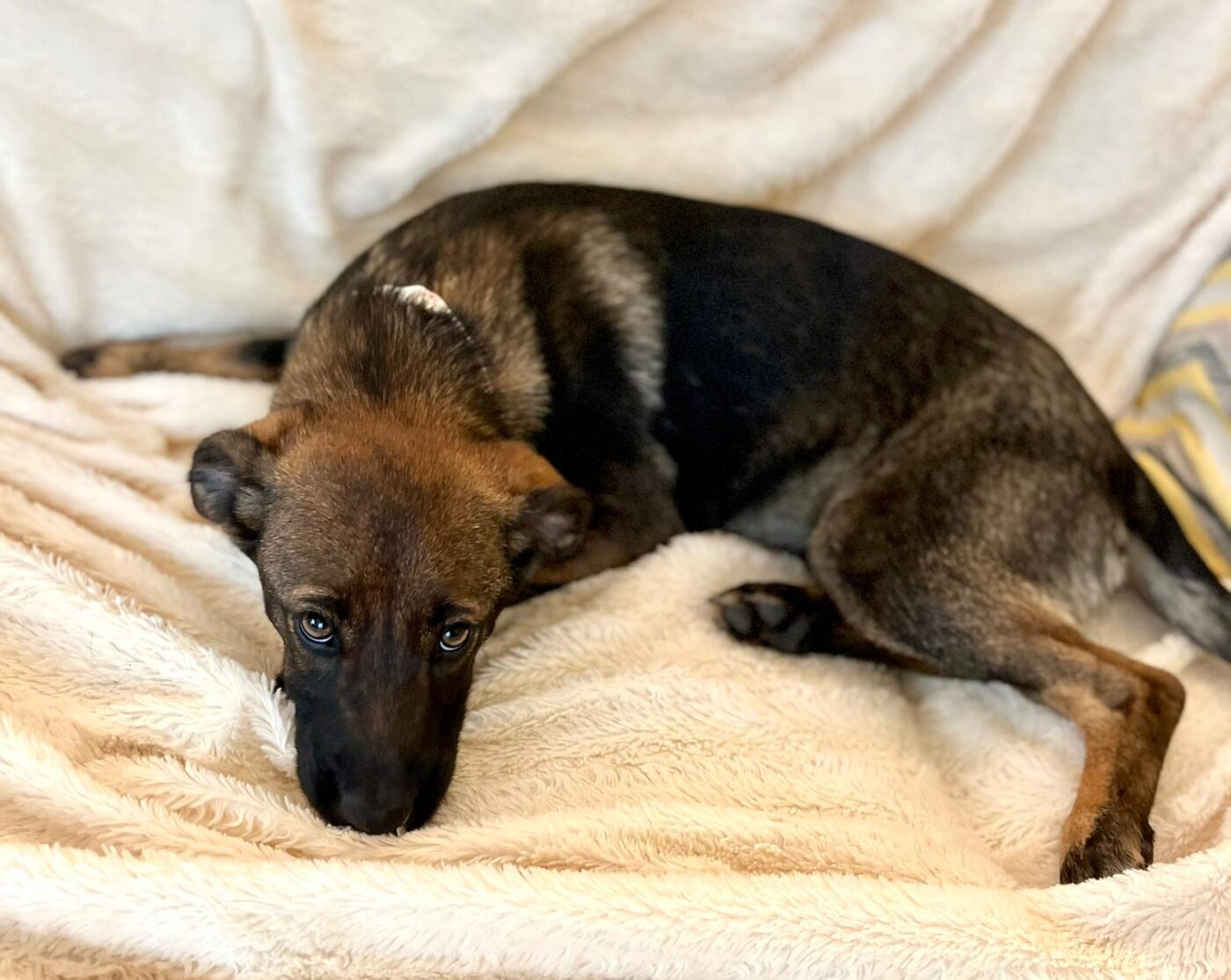 Inmiddels zijn de pups uitgegroeid tot superknappe, stabiele jonge honden die klaar zijn voor hun eigen baasje. Ailin is daar een prachtig voorbeeld van. Ze is sociaal, lief en aanhankelijk, zonder opdringerig te zijn. Ze zoekt contact op een prettige, rustige manier en voelt zich snel op haar gemak bij zowel mensen als andere honden. Binnen kwam ze snel tot rust en liet ze zien hoe ontspannen ze kan zijn: tevreden samen slapen, dichtbij maar in balans.