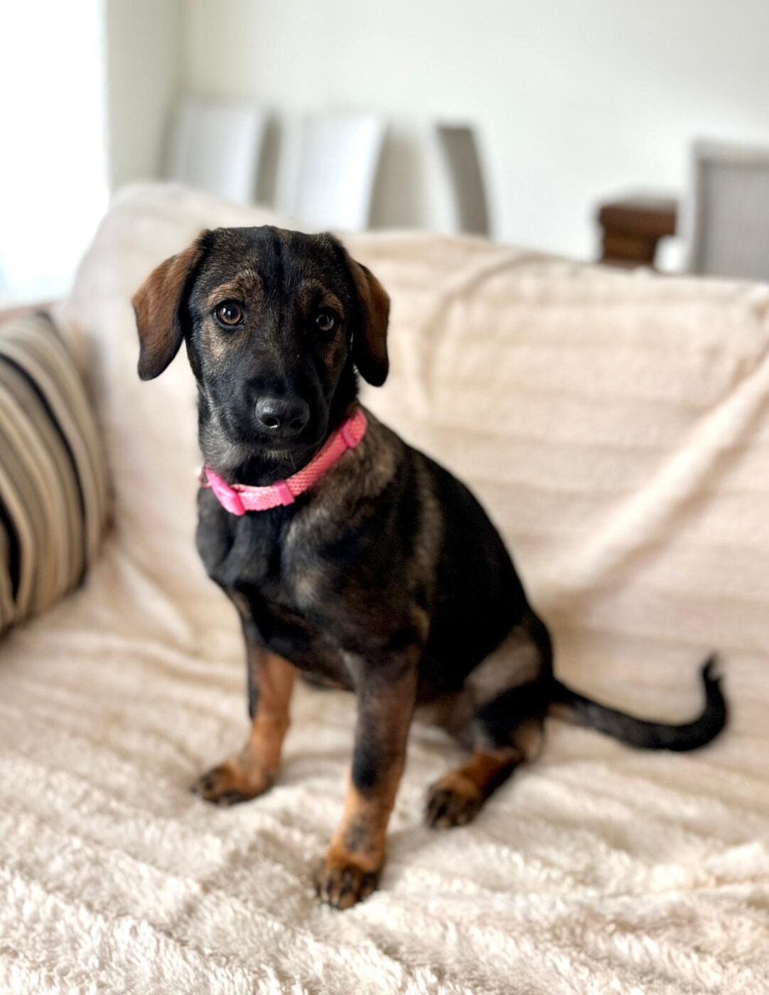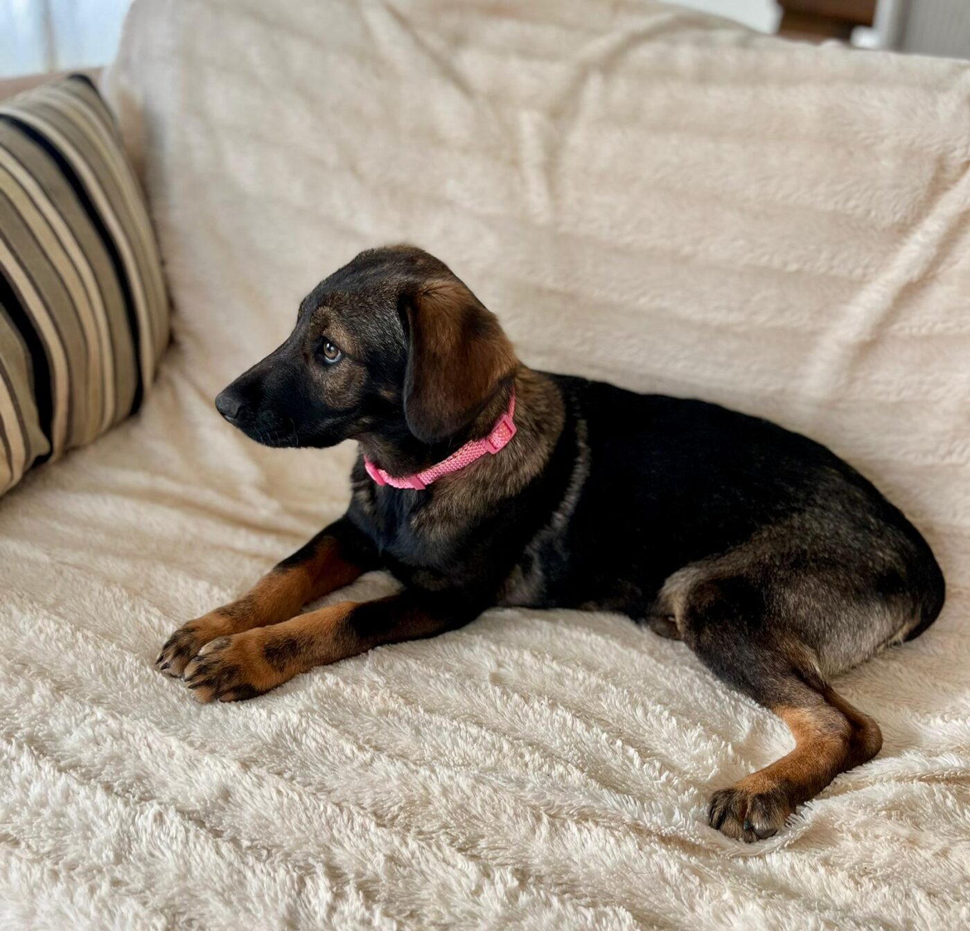 Inmiddels zijn de pups uitgegroeid tot superknappe, stabiele jonge honden die klaar zijn voor hun eigen baasje. Aisha is daar een prachtig voorbeeld van. Ze is sociaal, lief en aanhankelijk, zonder opdringerig te zijn. Ze zoekt contact op een prettige, rustige manier en voelt zich snel op haar gemak bij zowel mensen als andere honden. Binnen kwam ze snel tot rust en liet ze zien hoe ontspannen ze kan zijn: tevreden samen slapen, dichtbij maar in balans.