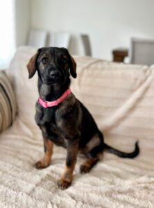 Aisha verblijft regelmatig bij de vrijwilligers in de woning en leert zo al hoe het huiselijke leven eruitziet. Ze groeit op in een veilige omgeving waarin ze de ruimte krijgt om zich te ontwikkelen tot een evenwichtige hond. Aisha is nieuwsgierig, zachtaardig van karakter en gaat respectvol om met andere honden. Spelen doet ze netjes en met gevoel voor grenzen. Ook leert ze al lopen aan de lijn, iets wat ze snel oppakt, ze is duidelijk een slimme dame.