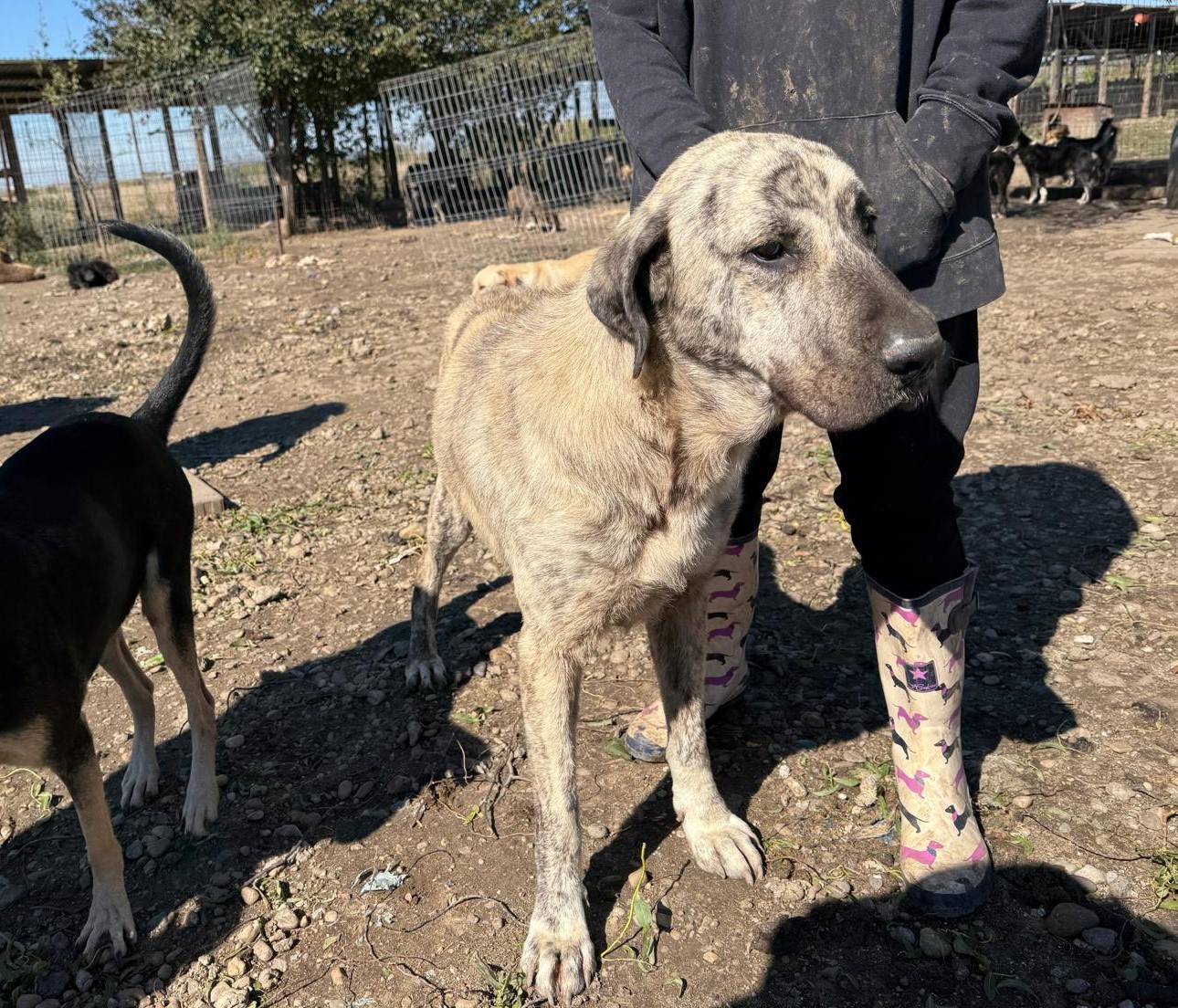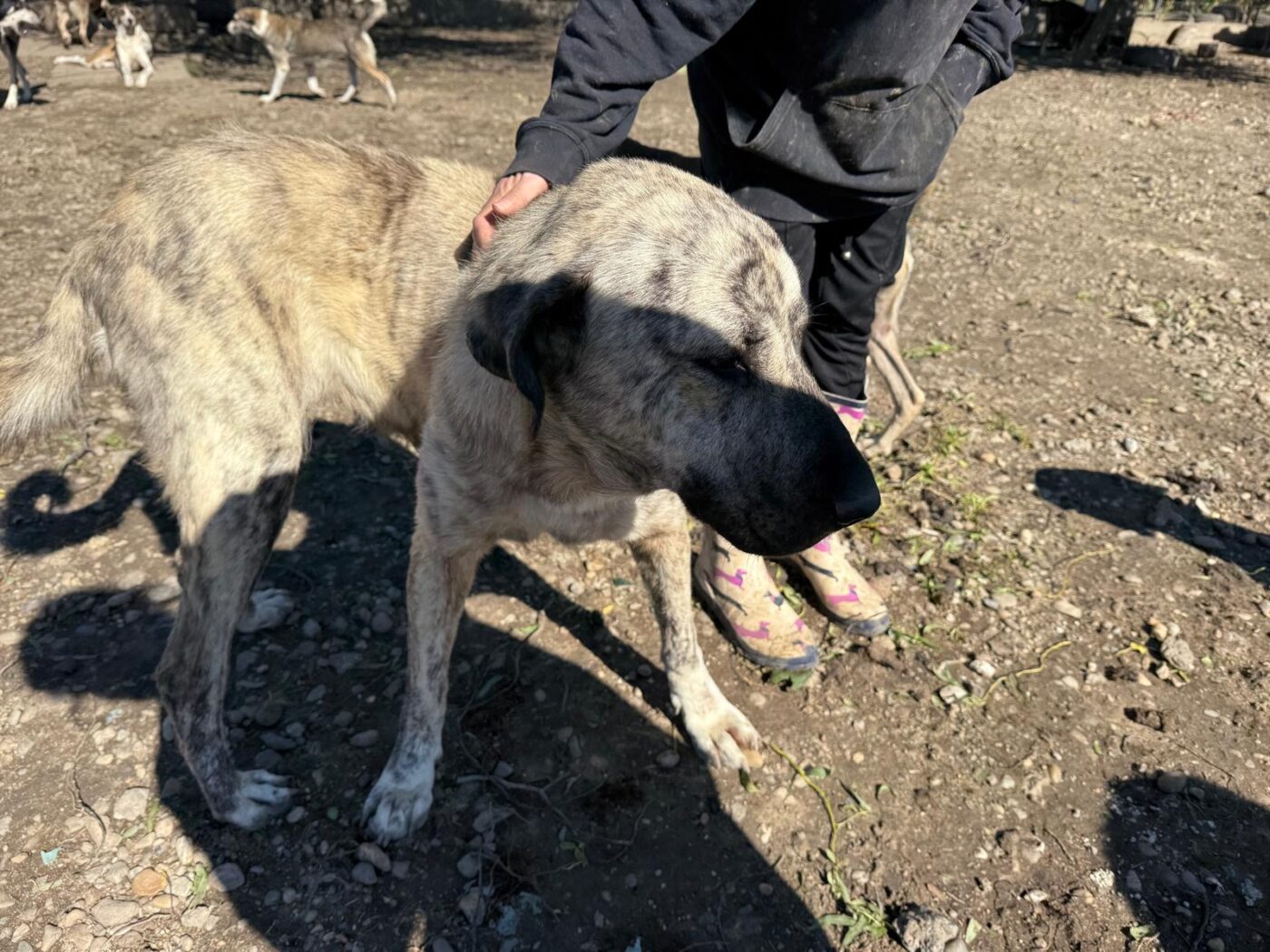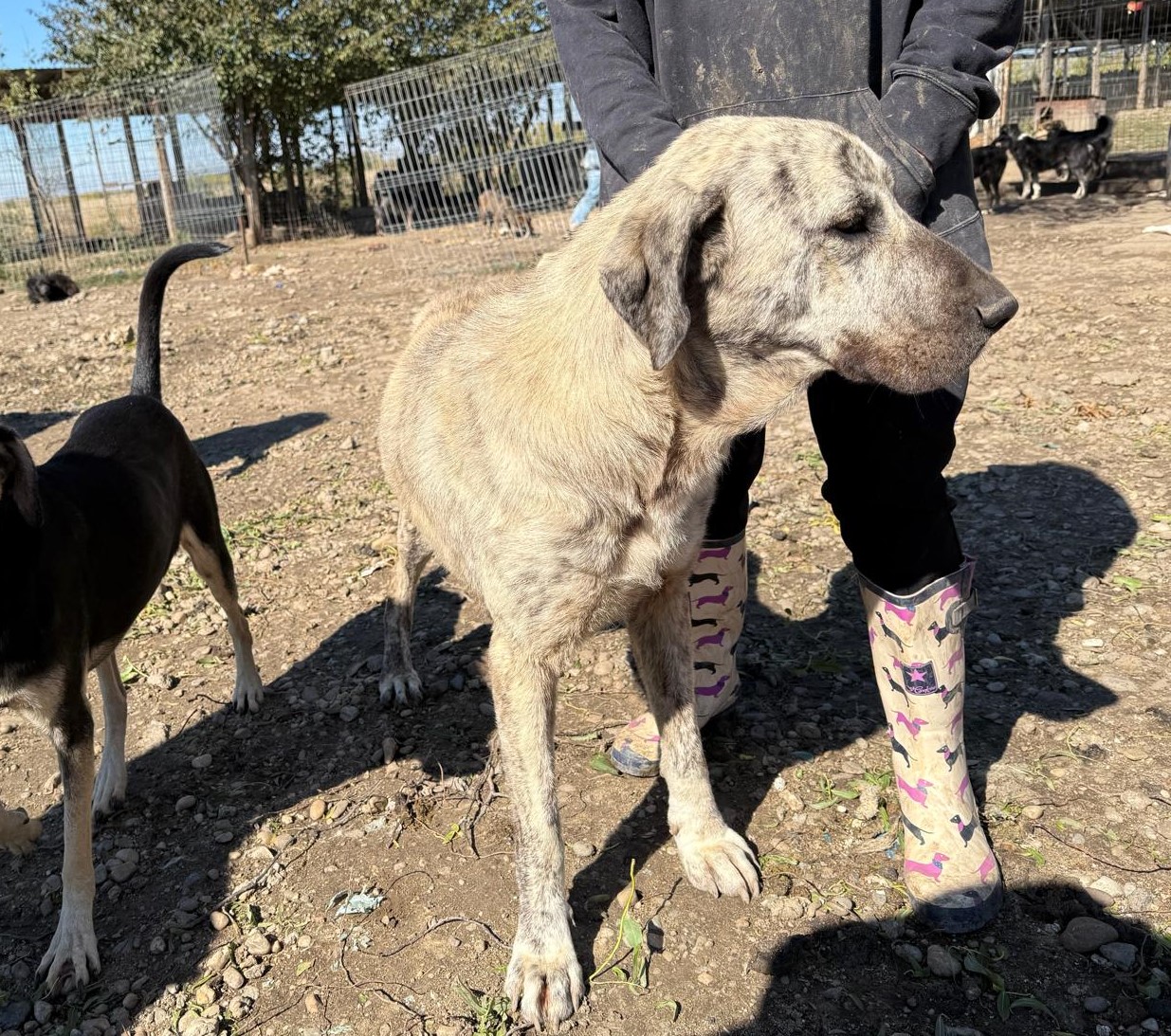 Tijdens een recent bezoek van onze vrijwilligers aan onze partneropvang in Roemenië, stonden ze even met open mond te kijken. Tussen alle Roemeense honden dook daar plots een mix Rafeiro do Alentejo op – een ras dat zijn oorsprong vindt in Portugal! Hoe ze precies in Roemenië is beland, blijft een raadsel, maar wat vaststaat: ze is een echte parel. We hebben haar de naam Alba gegeven.