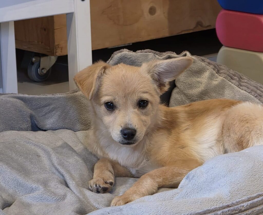 Amy is een mix teefje met een geschatte geboortedatum van 25 mei 2023 en heeft een verwachte eindhoogte van ongeveer 40 cm. (08/23)