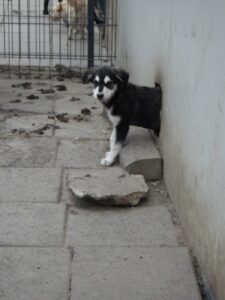 Zoals helaas veel te vaak gebeurd werd Aram samen met zijn twee broertjes en moeder gedumpt bij de opvang van onze partner organisatie. Met zijn husky achtige kleuren is hij enorm leuk om te zien! Waar zijn soort genootjes als kleine enthousiaste pups staan te springen om aandacht, vindt hij dit nog wat spannend. Hij heeft eerst even de tijd nodig om op zijn eigen tempo naar je toe te komen en vertrouwen te winnen.