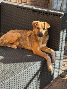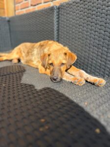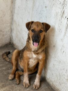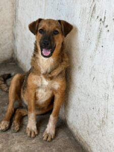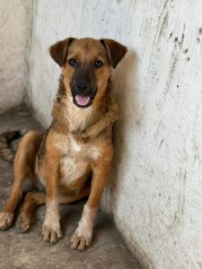 Aron is in het asiel van onze partner organisatie terecht gekomen toen zij een telefoontje van een bezorgde dame kreeg. Ze had langs een verlaten weg een nestje puppy’s gevonden, moederloos, hongerig en kwetsbaar. Gelukkig aarzelde ze geen moment en reed meteen die kant op. Zo werden de kleintjes gevonden en in veiligheid gebracht.