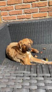 Zijn foster ziet na een paar dagen al een verschil en Aron wordt telkens een beetje minder afwachtend. Aron heeft een beetje tijd nodig om te ontdooien. Zijn foster zal een begin maken met de “opvoeding” van Aron zodra hij een beetje is gewend aan het reilen en zeilen in zijn nieuwe, tijdelijke thuis. Dat Aron een slimme kerel is wel duidelijk, hij is zo goed als zindelijk.