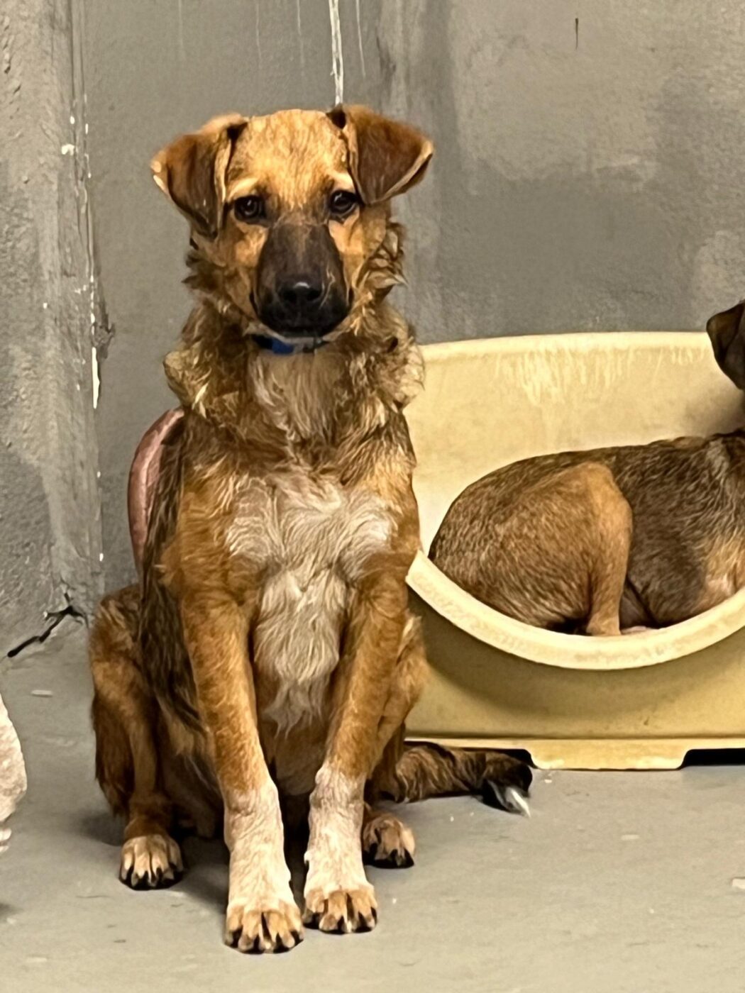 Aron is in het asiel van onze partner organisatie terecht gekomen toen zij een telefoontje van een bezorgde dame kreeg. Ze had langs een verlaten weg een nestje puppy’s gevonden, moederloos, hongerig en kwetsbaar. Gelukkig aarzelde ze geen moment en reed meteen die kant op. Zo werden de kleintjes gevonden en in veiligheid gebracht.