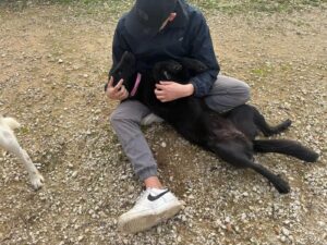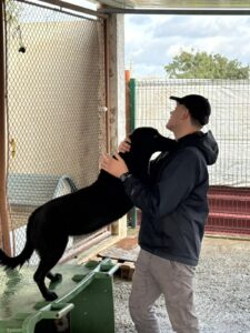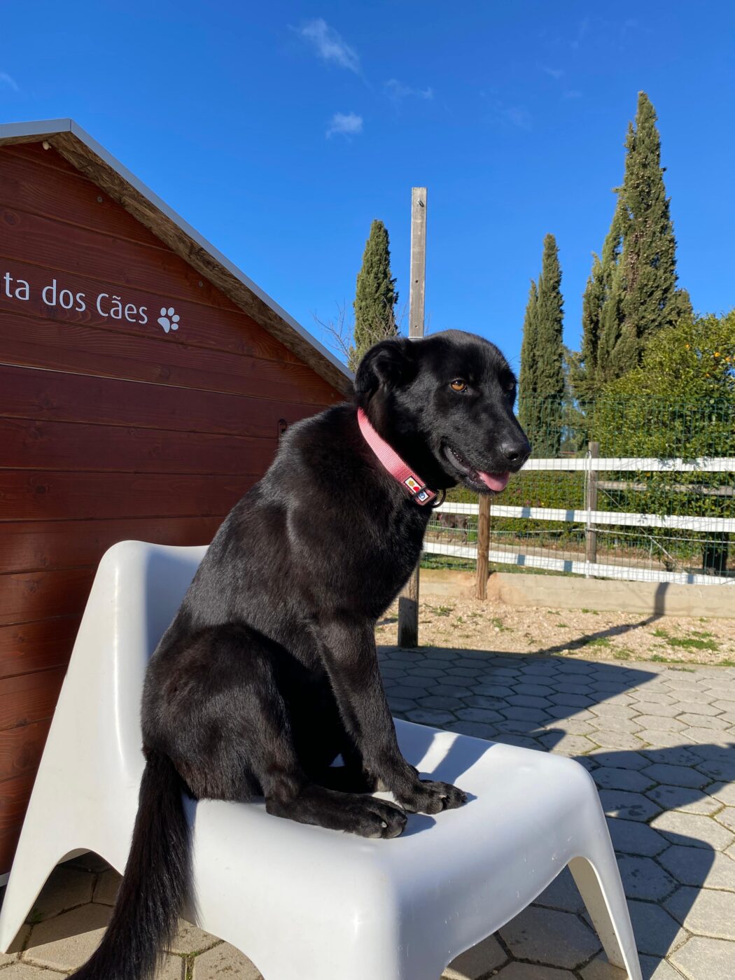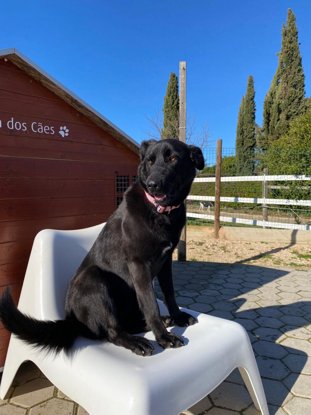 Toen vrijwilligers onlangs in Portugal waren, zagen ze haar zitten: een prachtige zwarte hond, alleen in een kennel. Zwarte honden hebben het in asielen extra moeilijk en Aska was daar geen uitzondering op. Ze was op straat gevonden, door iemand naar het asiel gebracht en daarna… nooit meer opgehaald. Als ze ooit een baasje had, is die niet meer teruggekomen.