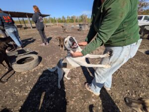 Auro leeft in de open shelter, samen met een roedel. Hij maakt makkelijk contact met zowel de andere honden als met mensen en behandelt iedereen respectvol. Zodra een vrijwilliger zich naar hem toe bewoog, merkte Auro het meteen op. Met een zachte blik in zijn ogen begon hij naar de vrijwilliger toe te stappen, en terwijl hij dichterbij kwam, ging zijn staart voorzichtig heen en weer. Zijn bewegingen waren niet opdringerig; hij naderde de vrijwilliger met een open, vriendelijke houding. Hij genoot zichtbaar van elk beetje aandacht – een zachte aai over zijn koppie of simpelweg een vriendelijke stem die hem opvrolijkte.
