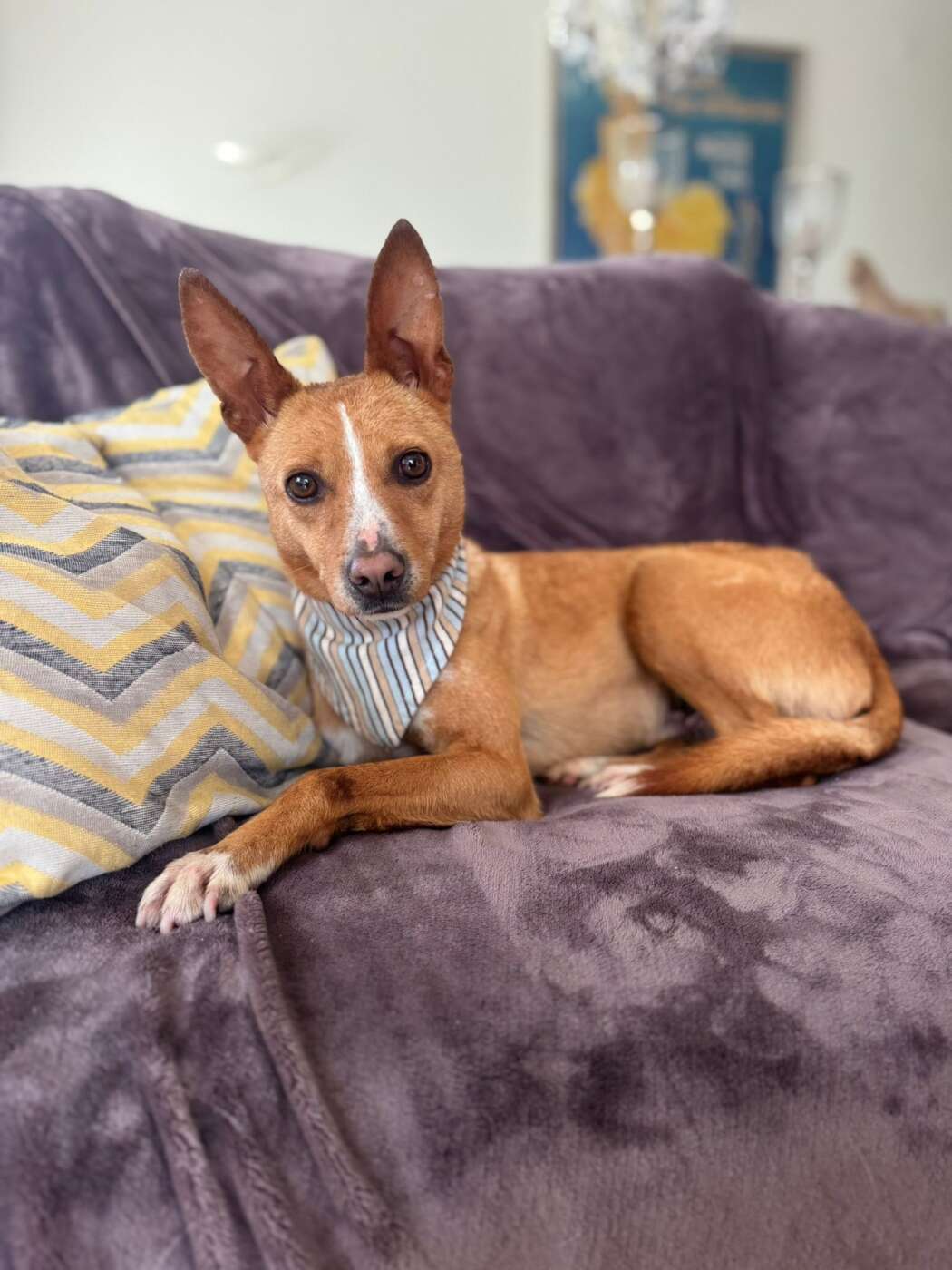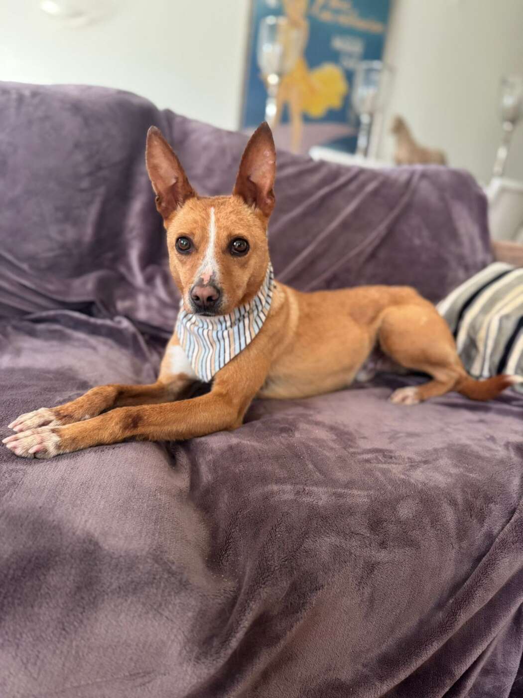 Toen hij een keer mee mocht naar de vrijwilligerswoning, liet hij zien hoe goed hij zich kan aanpassen. Nieuwsgierig verkende hij de ruimte en toen hij eenmaal op de bank werd uitgenodigd, kroop hij er lekker bij voor een knuffelmoment. Het leven in huis is nog nieuw voor hem, maar hij pakte het verrassend goed op: hij vond een hondenmand, ging liggen en viel ontspannen in slaap.