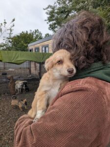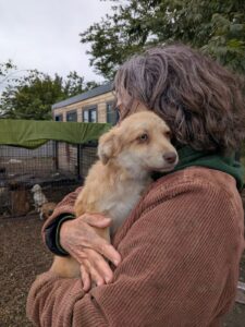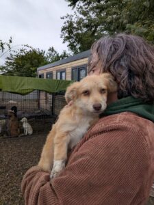 Samen met haar zusjes en broertje kwam Babet terecht in het staatsasiel van Roemenië – geen plek voor jonge pups om op te groeien. Het was koud, rumoerig en er was nauwelijks aandacht voor de kleintjes. Gelukkig werd ook Babet op tijd opgehaald door een vrijwilliger van onze partnerrescue en kreeg ze daar de veiligheid die ze zo hard nodig had.