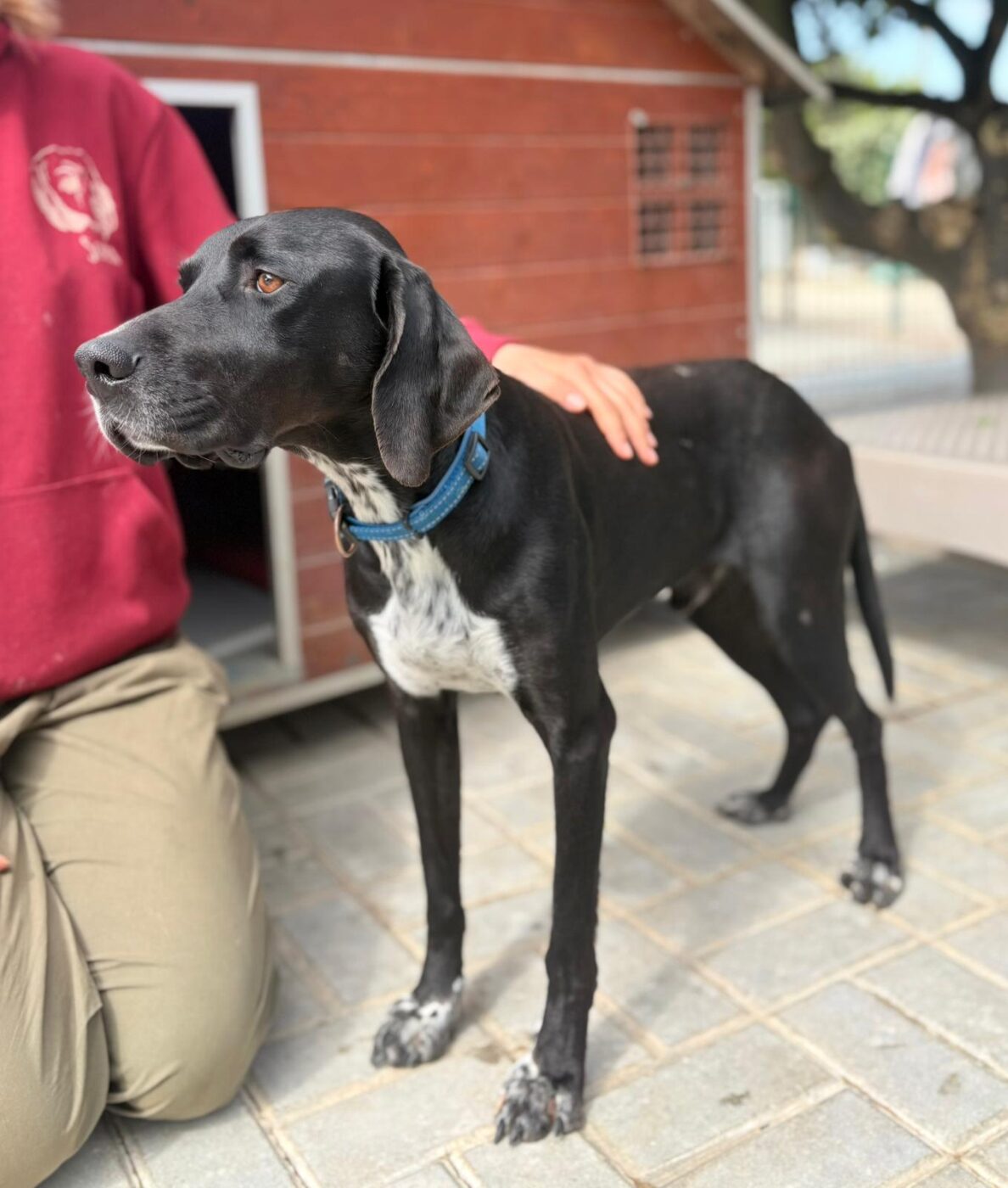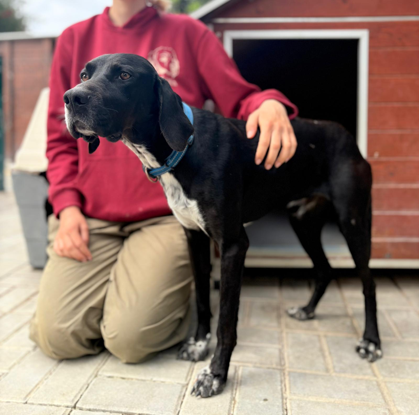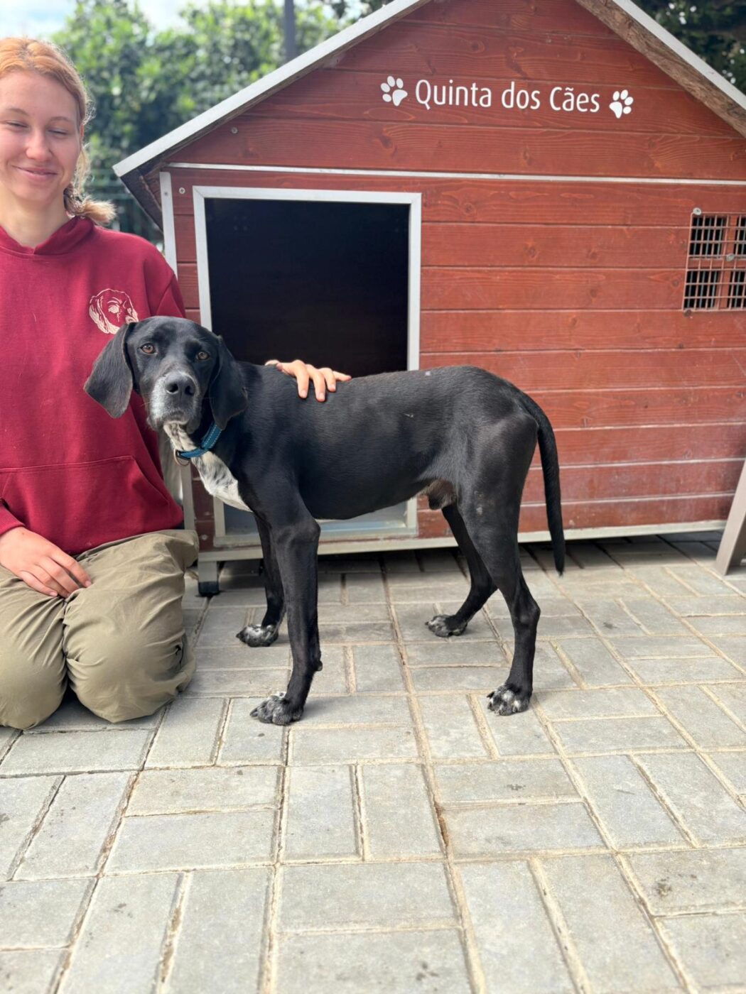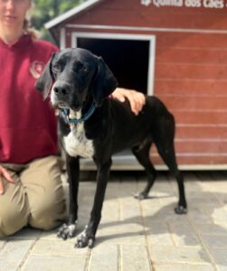 Bali troffen we in één van de ergste staatsasielen van Portugal. Een plek waar honden te vaak verdwijnen in anonimiteit. Hij keek ons aan met een behoorlijk verdrietige blik, niet dramatisch, niet hysterisch, maar gewoon… moe. Op dat moment was het eigenlijk al besloten. We hebben hem daar niet laten zitten.