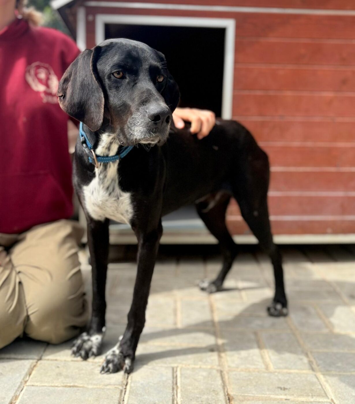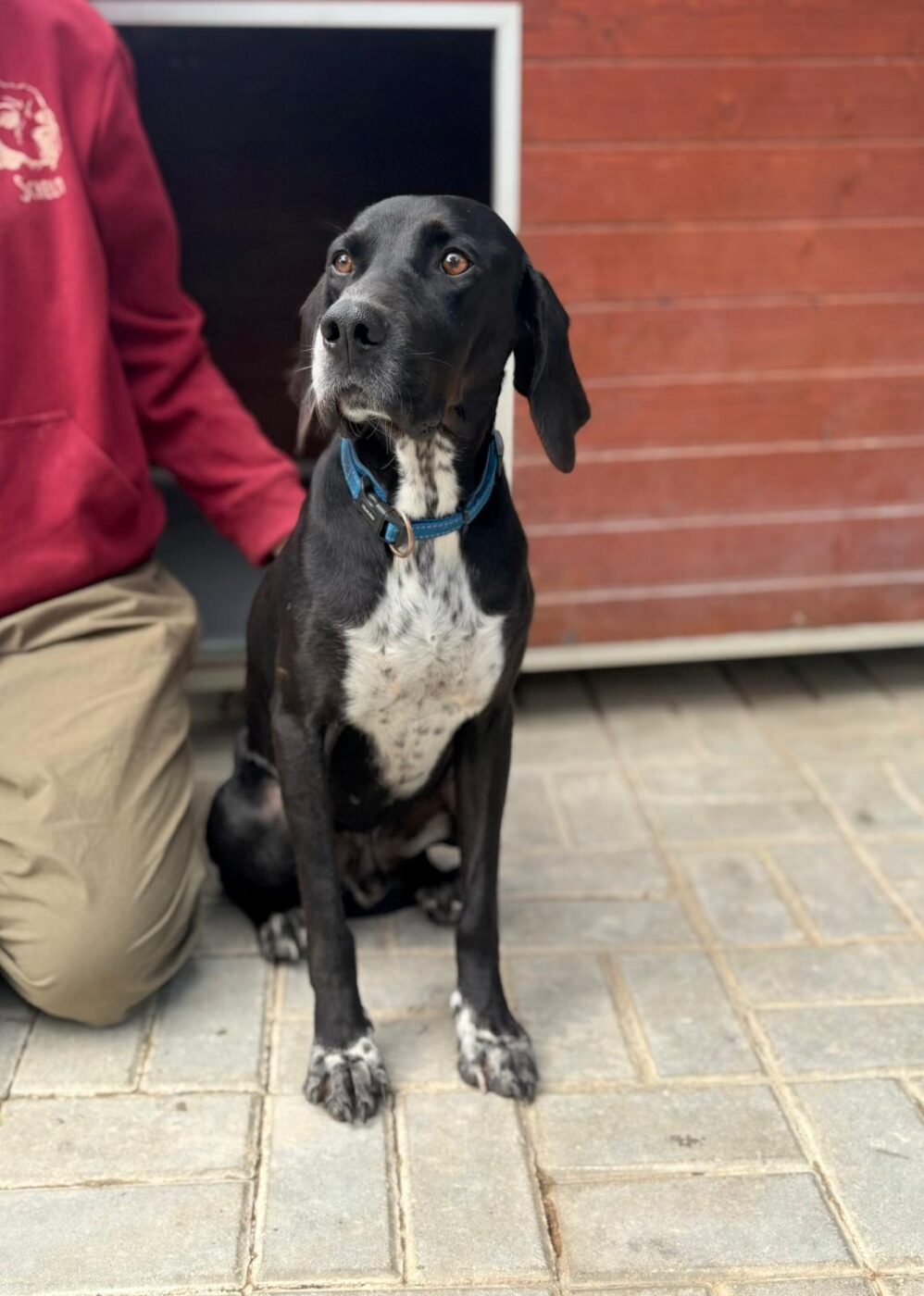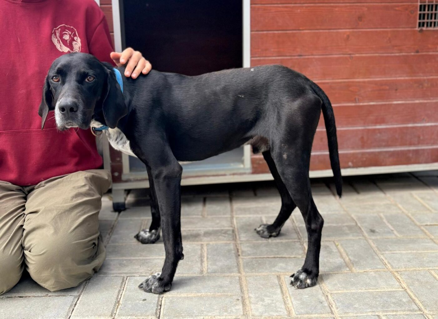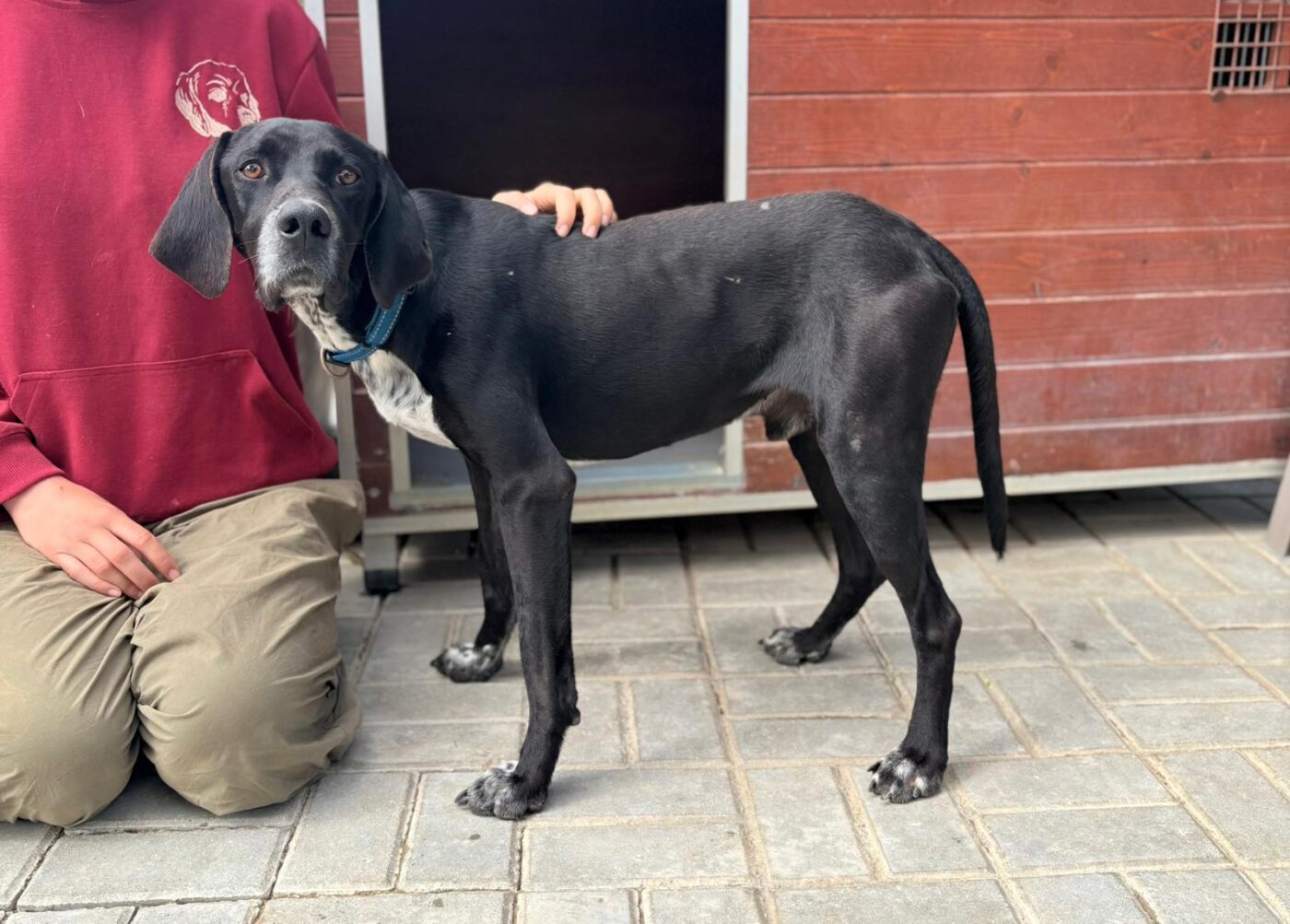 Bali troffen we in één van de ergste staatsasielen van Portugal. Een plek waar honden te vaak verdwijnen in anonimiteit. Hij keek ons aan met een behoorlijk verdrietige blik, niet dramatisch, niet hysterisch, maar gewoon… moe. Op dat moment was het eigenlijk al besloten. We hebben hem daar niet laten zitten.