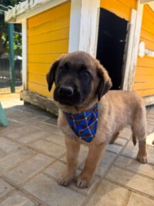 Balou is een mix Rafeiro do Alentejo. Dat betekent dat hij zal uitgroeien tot een grotere hond met een zelfstandig en waakzaam karakter. Hij heeft ruimte nodig, bij voorkeur een goed omheinde tuin, en een eigenaar die begrijpt dat dit type hond niet alleen fysiek ruimte vraagt, maar ook duidelijke begeleiding. In ruil daarvoor krijg je een loyale, rustige en stabiele hond.