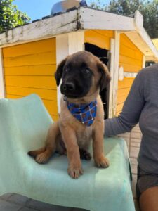 Met andere honden gaat hij heel soepel om. Hij is sociaal, past zich makkelijk aan en draait gewoon mee in de groep. Samen eten, spelen en slapen gaat zonder gedoe. Hij heeft een fijne, evenwichtige energie die je niet vaak ziet bij zo’n jonge pup.