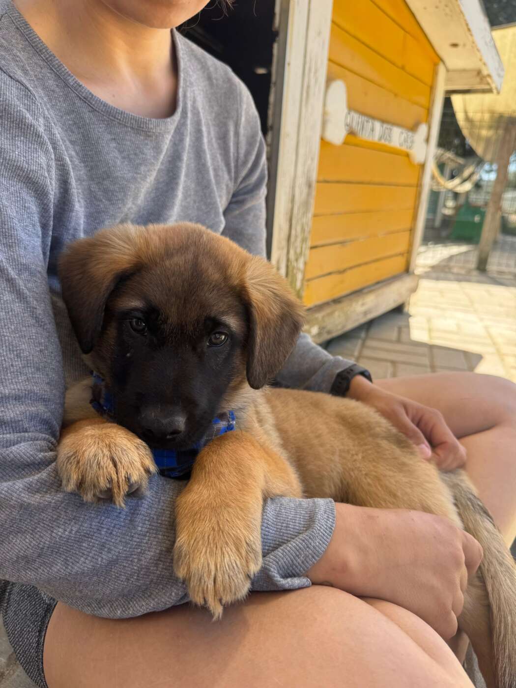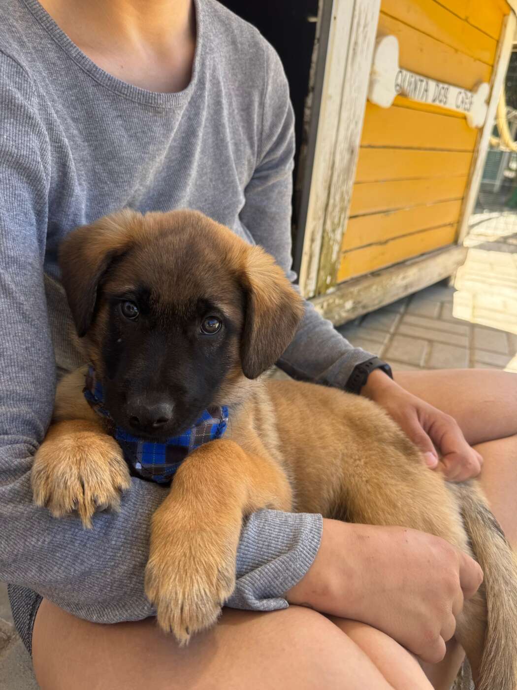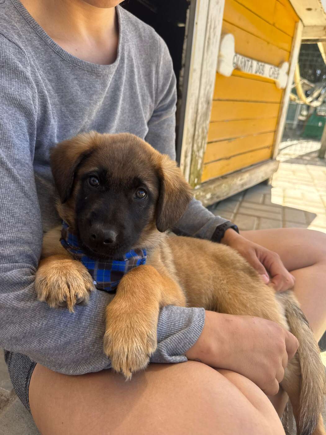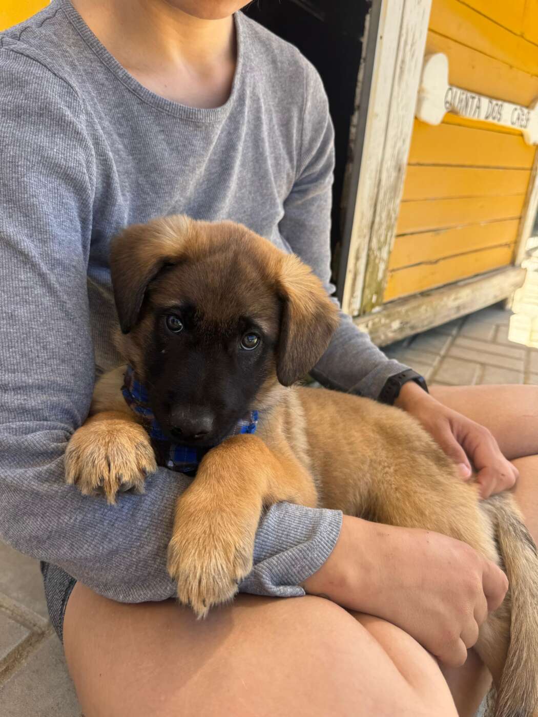 Balou, zo heet deze knappe en lieve knul. Hij werd als piepklein pupje gevonden, zonder moeder, en volledig afhankelijk van hulp. Onze rescuer in Portugal heeft hem met de fles grootgebracht, en dat zie je terug in hoe hij naar mensen toe is: open, zacht en enorm mensgericht.