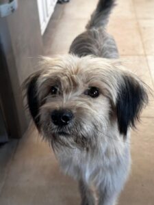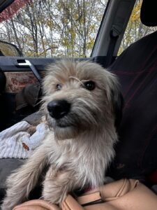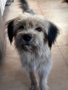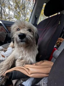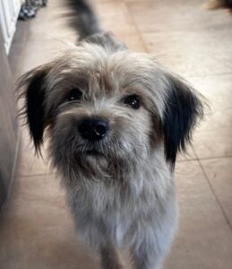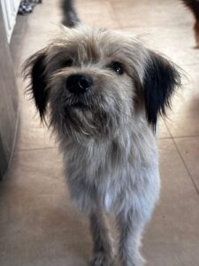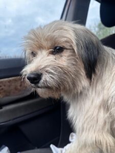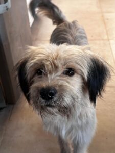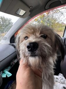 Onlangs werd Mirela gevraagd om wat pups op te halen die op straat liepen. Onderweg daar naartoe kwam ze kleine Banjo tegen. Hij wandelde daar over straat en begroette alle mensen vriendelijk kwispelend. Dit in de hoop dat iemand hem iets te eten zou geven. Volgens een bewoner liep Banjo al maanden daar rond en was hij door iemand uit de auto gezet.