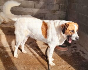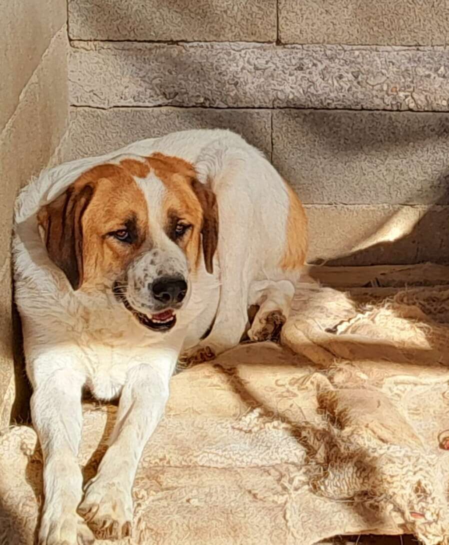 Bernand is groot, lief, speels, relaxed en wordt door onze partnerorganisatie in Griekenland omschreven als een grote baby! Hij is samen met zijn zusje Belinda gevonden in de buurt van het asiel toen ze nog erg klein waren. Inmiddels zijn ze volgroeid en wordt het tijd om voor deze “reus” een liefdevolle plek te zoeken. Bernand een gecastreerde mix reu en hij is ongeveer 60 cm hoog. Zijn geschatte geboortedatum is 25 juli 2021. Hij weegt ongeveer 47 kilo.(08/22)