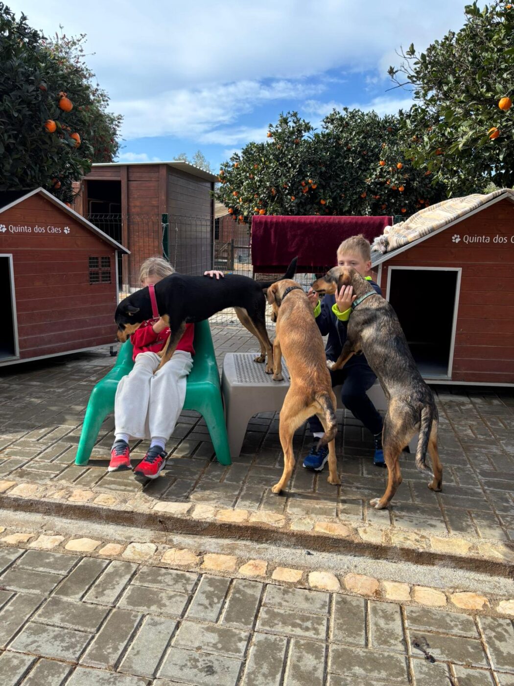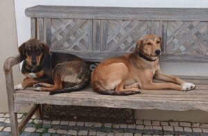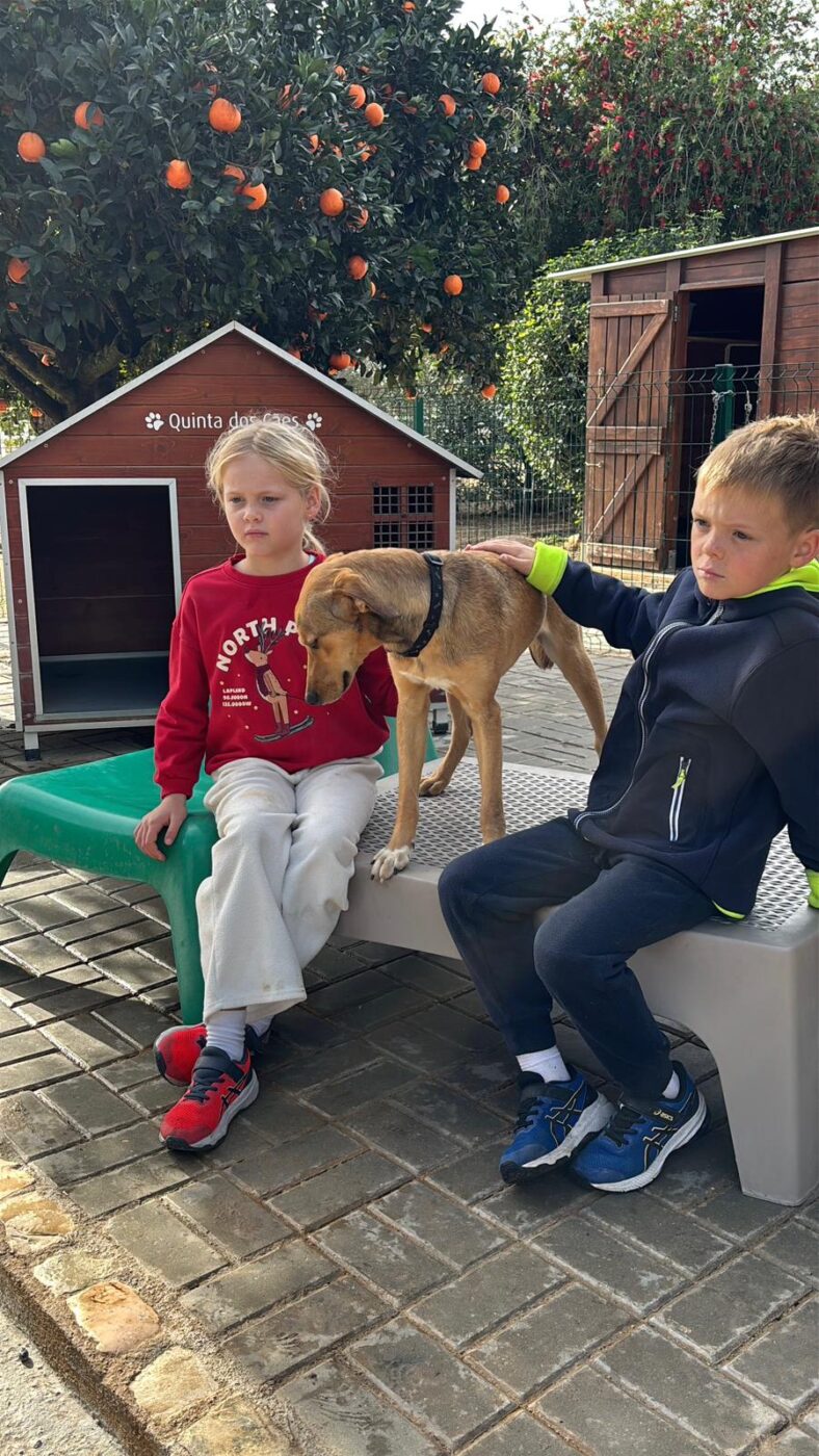 Dit is Bert, de broer van Ernie, die net als hij vanuit het staatsasiel in Portugal mocht verhuizen naar de Quinta. In het asiel had hij nauwelijks ruimte om zijn energie kwijt te kunnen, maar sinds hij op de Quinta is, zie je hem echt tot rust komen en genieten van zijn nieuwe leven. Hij maakt dankbaar gebruik van de vrijheid, de wandelingen, het contact met mensen en de gezelligheid om hem heen.