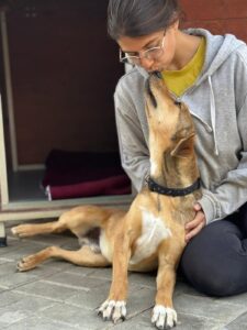 Ook tijdens wandelingen laat hij zien dat hij een slimme en meewerkende hond is. Hij loopt inmiddels netjes mee aan tuig en riem en past zich goed aan in de groep.