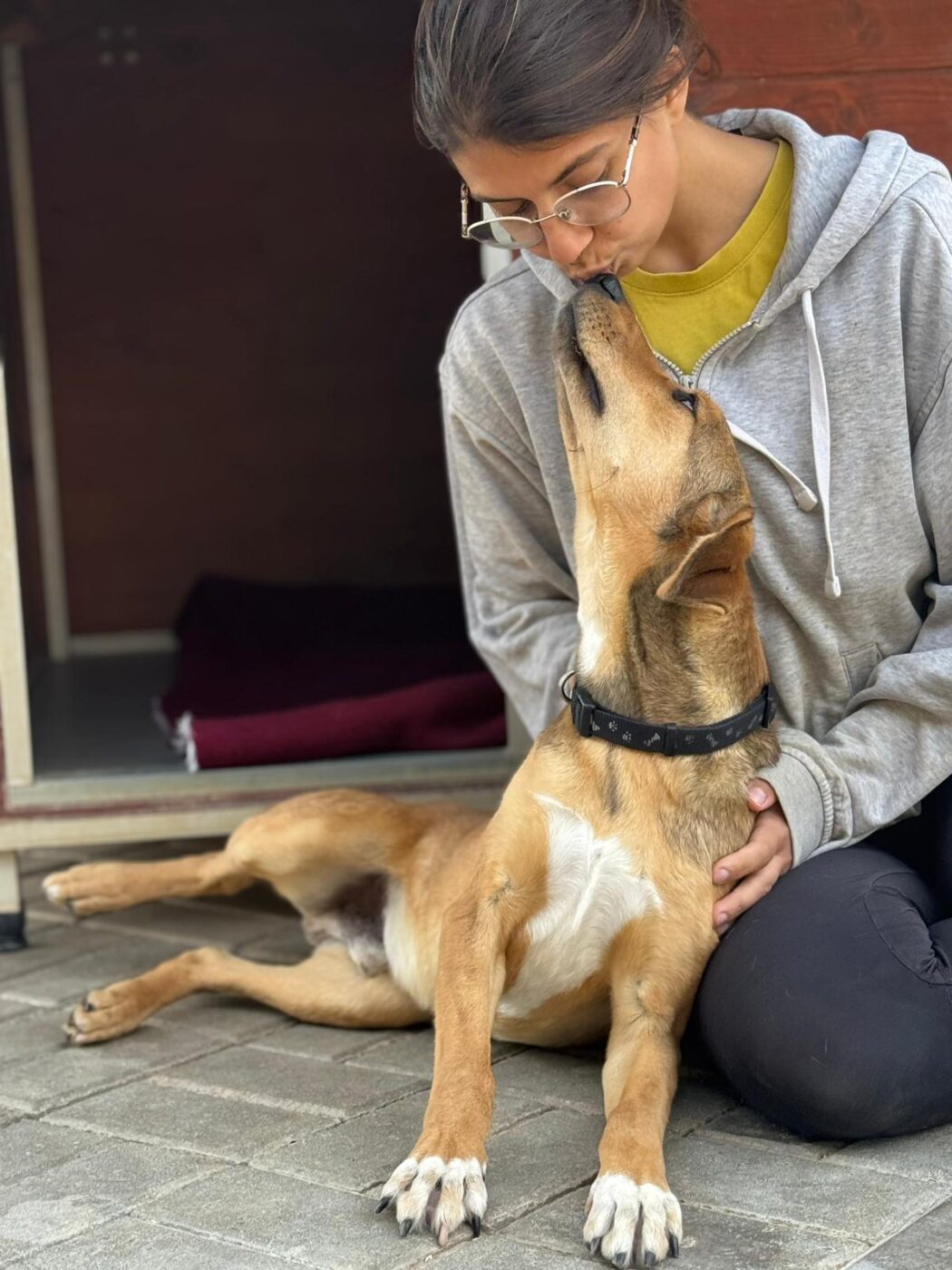 Bert heeft inmiddels meerdere keren in de vrijwilligerswoning geslapen, zowel samen met zijn broer als los daarvan, en dat ging uitstekend. Binnen is hij rustig, relaxed en aangenaam aanwezig. ’s Avonds ligt hij lekker ontspannen en ’s nachts slaapt hij goed door zonder ongelukjes in huis. Hij geniet ervan om dichtbij zijn mens te liggen, want net als zijn broer is hij dol op knuffels en nabijheid.