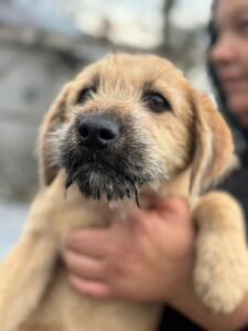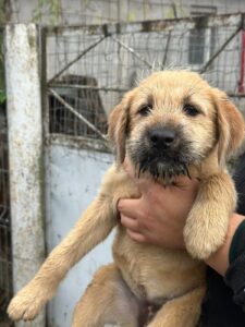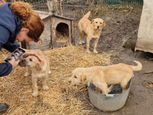 Onlangs waren vrijwilligers aan het helpen bij onze rescuepartner in Roemenië. Toen zagen ze daar een mama met vier pupjes. Mama was met haar kleintjes gevonden in een afgelegen schuurtje bij een boer. Gelukkig bracht hij het gezin naar Mirela toe. Zo goed en kwaad als het kon had de enorm lieve moeder voor haar pups gezorgd, maar nu waren ze eindelijk veilig.