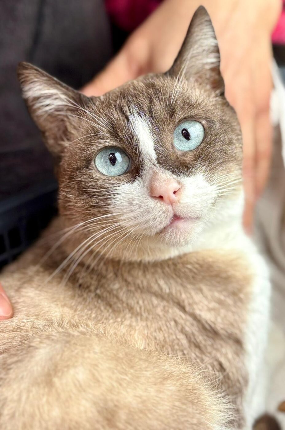Dit is Blue, een bijzondere kater met een sterk verhaal. Blue werd als klein, ziek kitten op straat gevonden. Gelukkig werd hij gevonden door lieve mensen die hem goed verzorgd hebben en de kans hebben gegeven om weer helemaal op te knappen. Dankzij die zorg is hij uitgegroeid tot een lieve, rustige en dankbare kat.