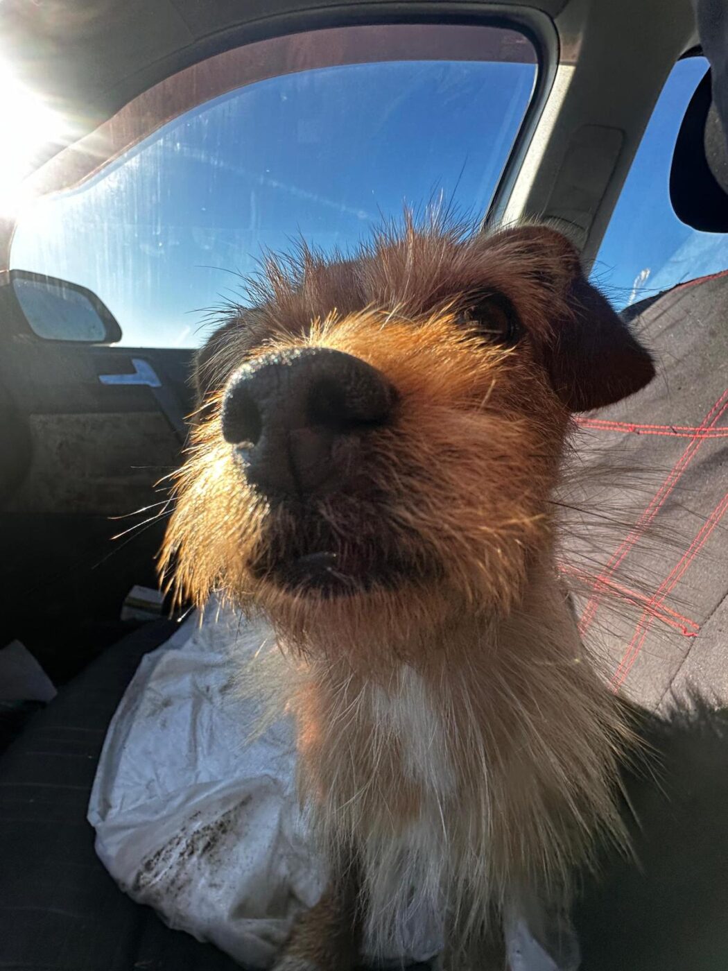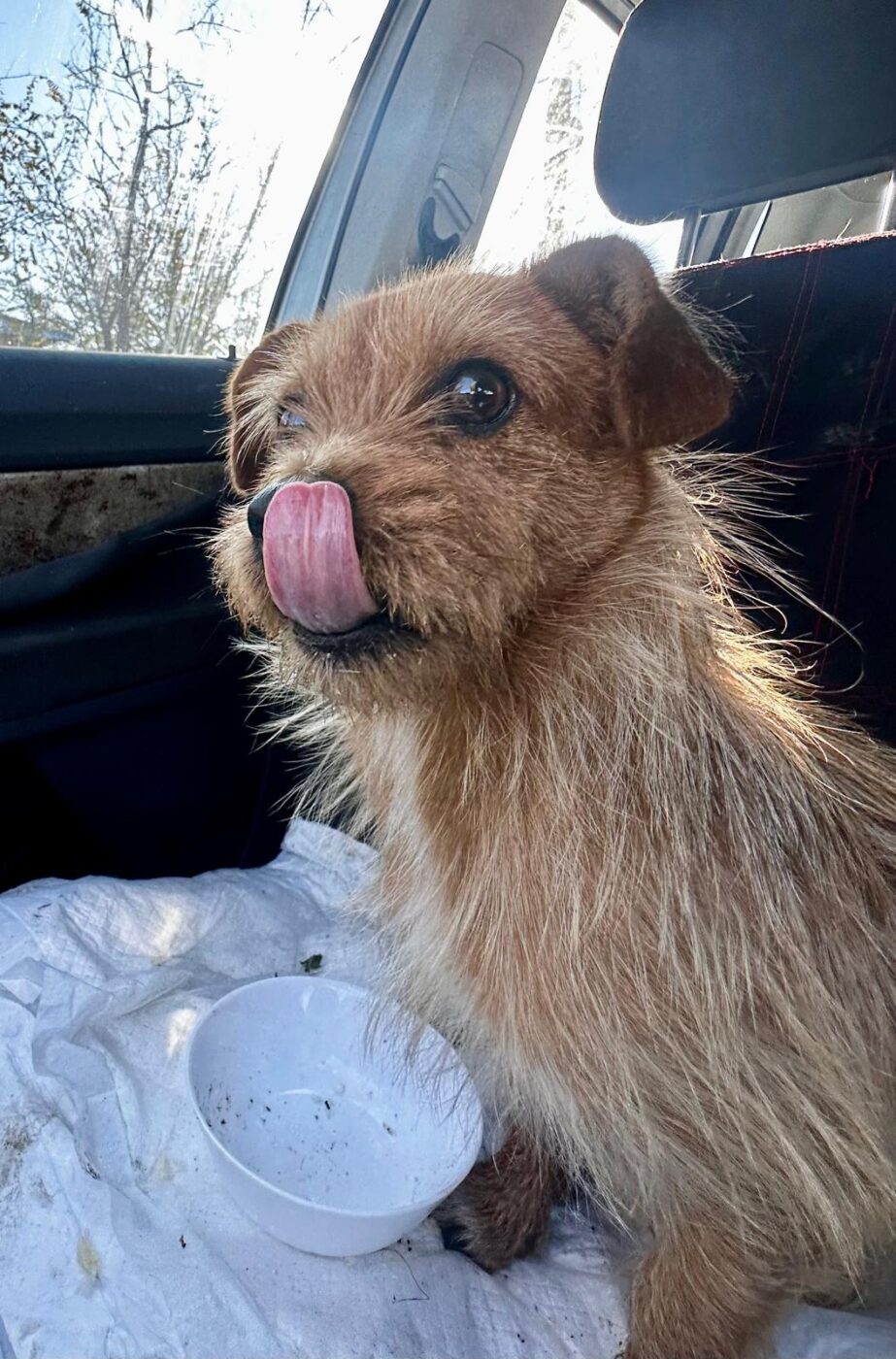 Soms kiest een hond zijn nieuwe leven nog vóór wij het doorhebben. Zo was het ook bij Bob. Een vrijwilliger was op weg naar de dierenarts toen ze, midden op een stille weg, een klein gestalte zag lopen. Geen huis in de wijde omtrek, geen halsband die terugverwees naar iemand die hem miste. Alleen Bob, dapper stappend langs de kant van de weg, alsof hij nog één keer moed had verzameld om door te blijven lopen — tot iemand hem zou zien.