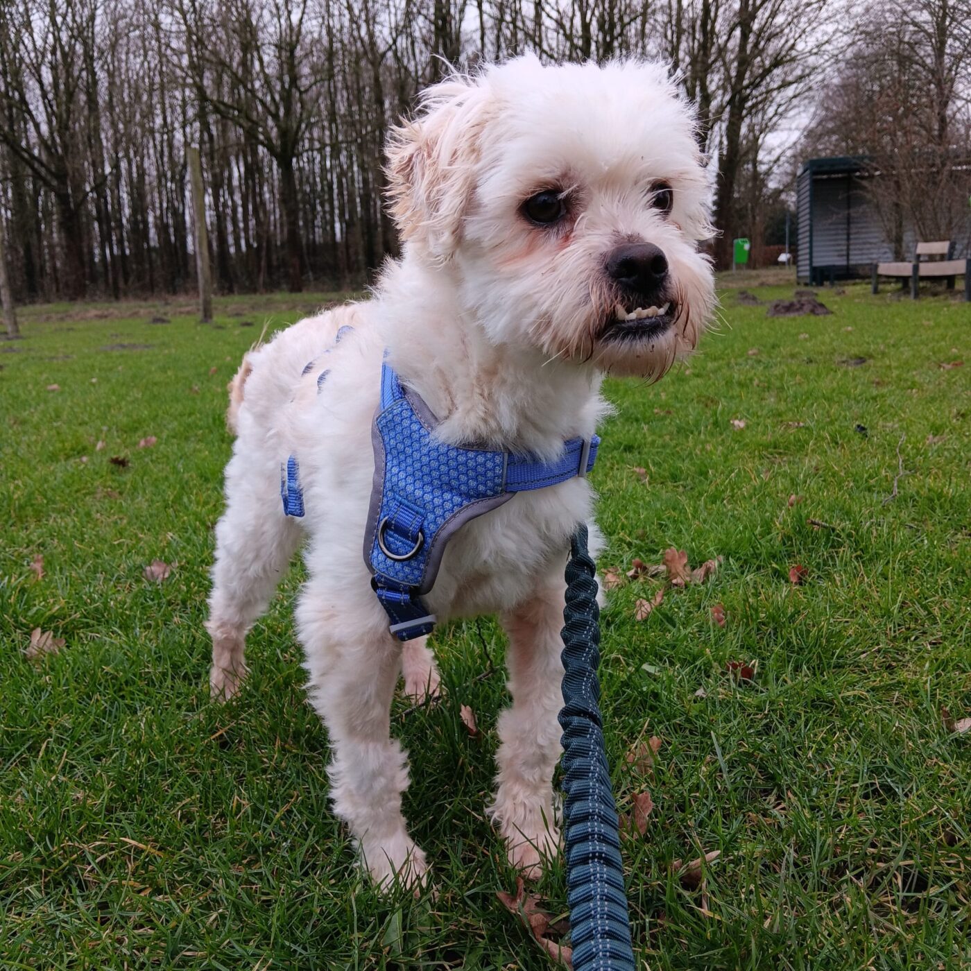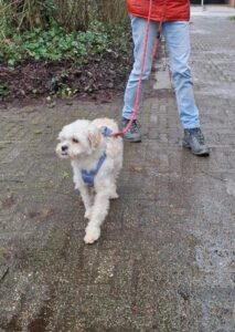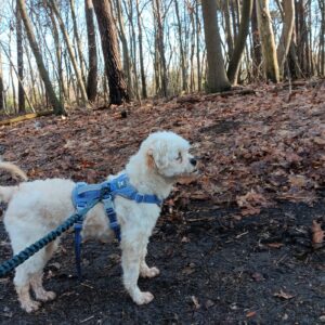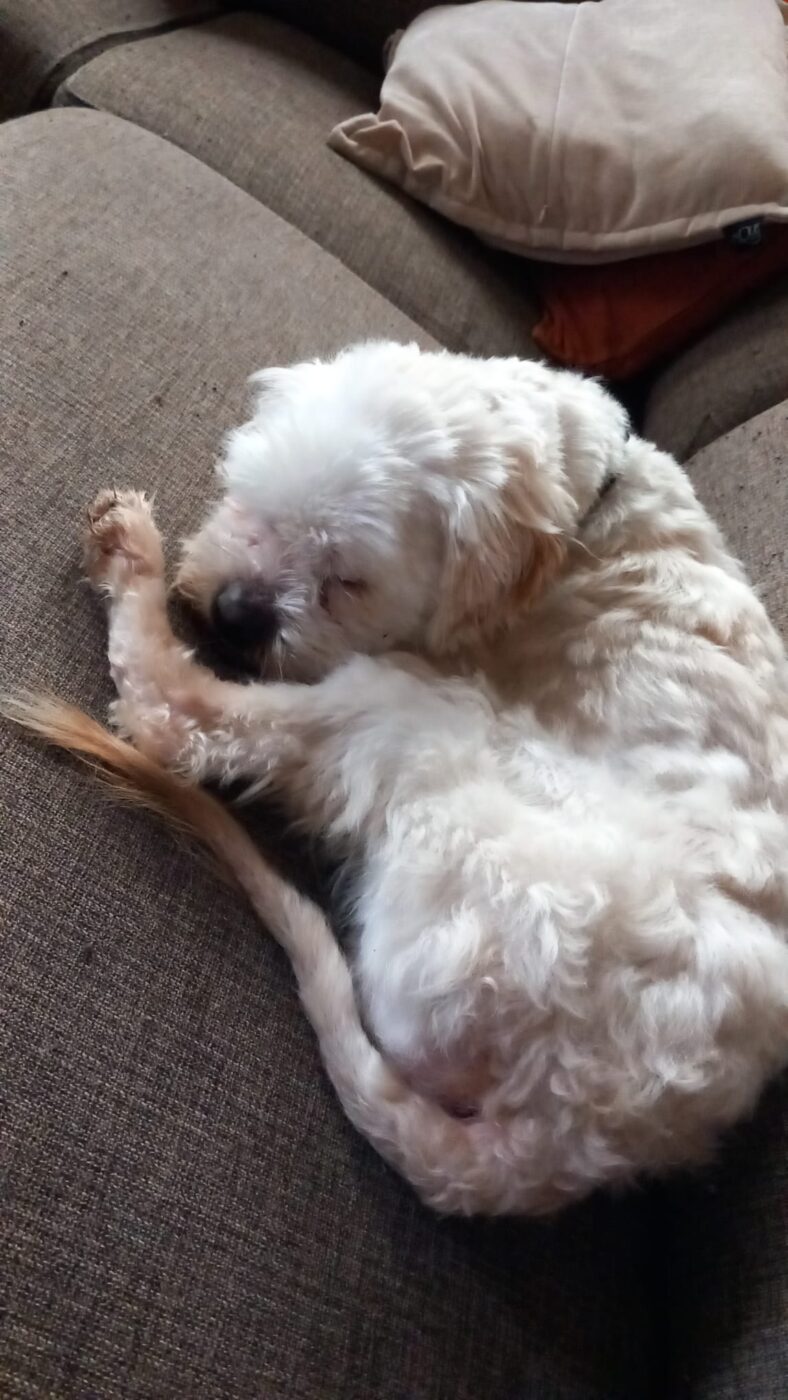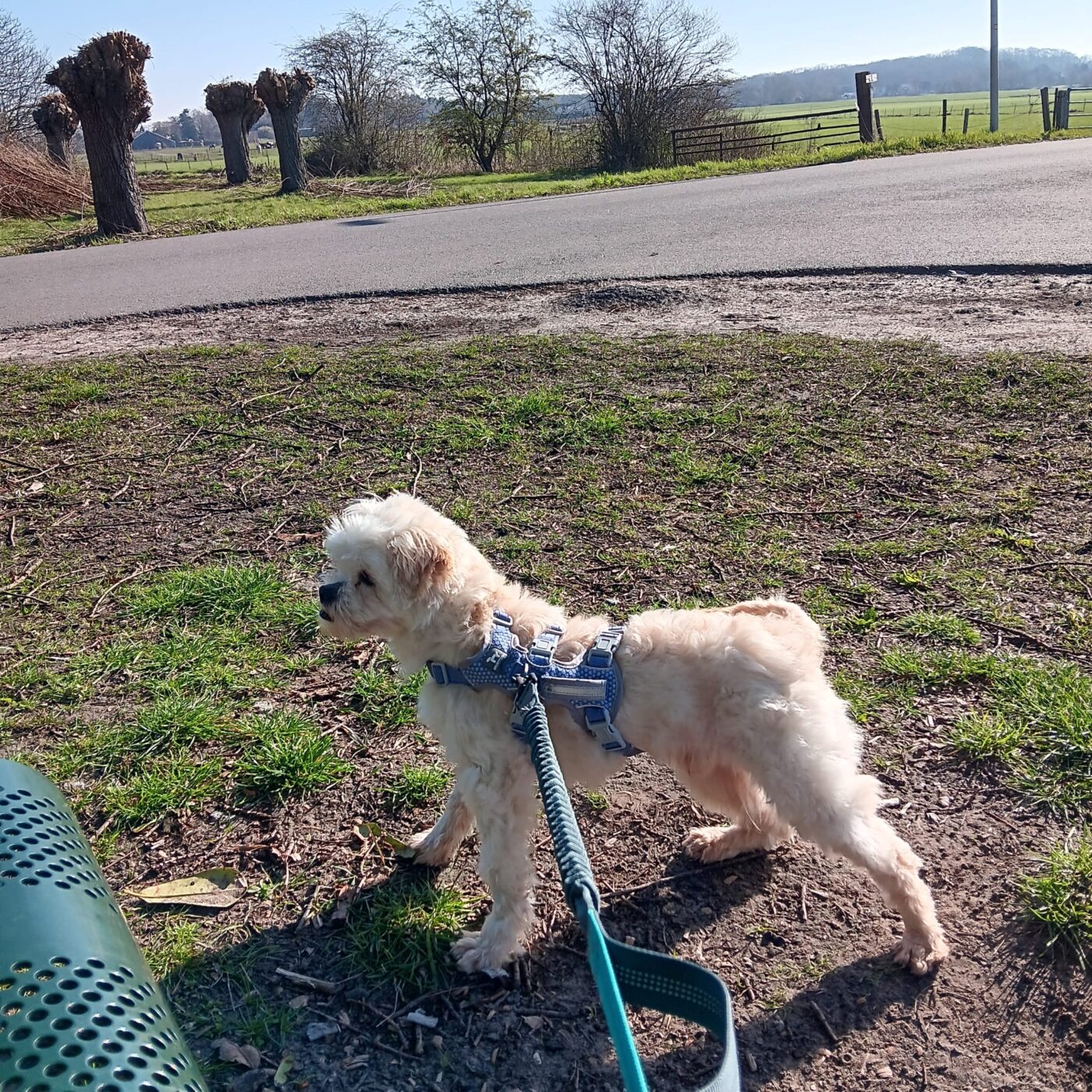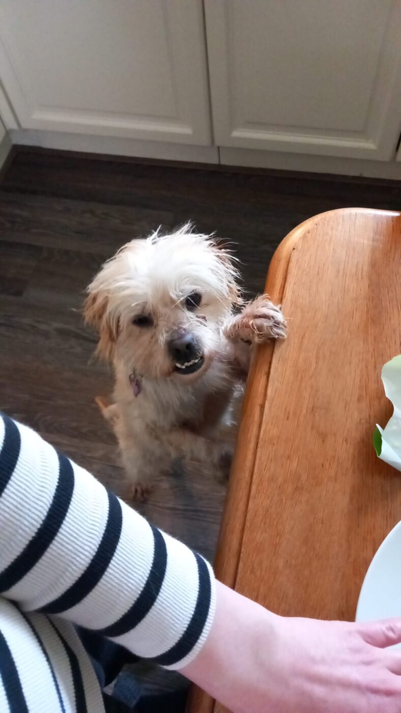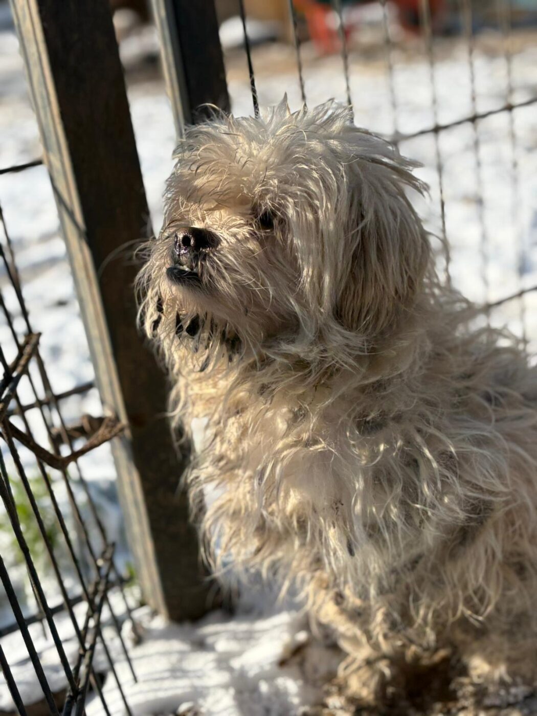 Bij binnenkomst was zijn vacht ernstig verwaarloosd, vol klitten. Hij is inmiddels geknipt en verzorgd, maar het verhaal daarachter is duidelijk: te weinig zorg, te weinig aandacht, te weinig liefde. Dat laat sporen na, zeker bij een hond als Bommel, die zo duidelijk gericht is op mensen.