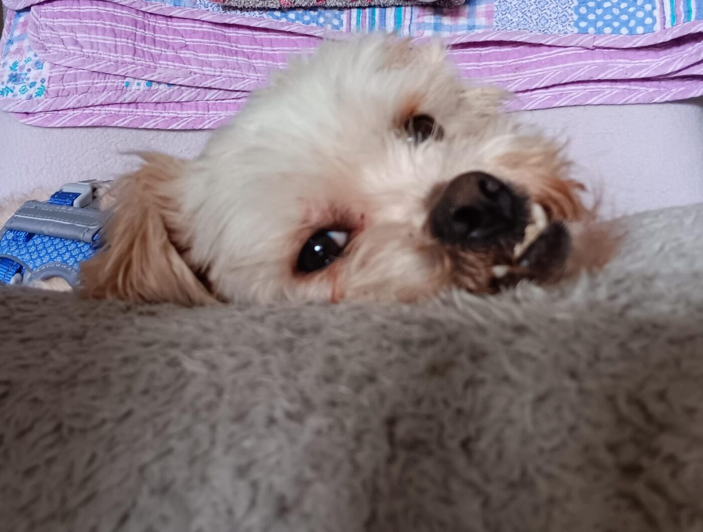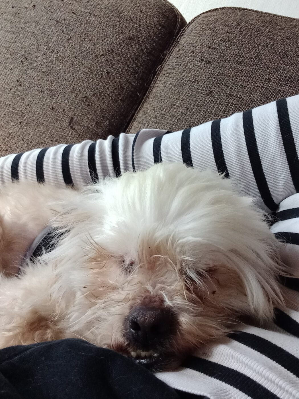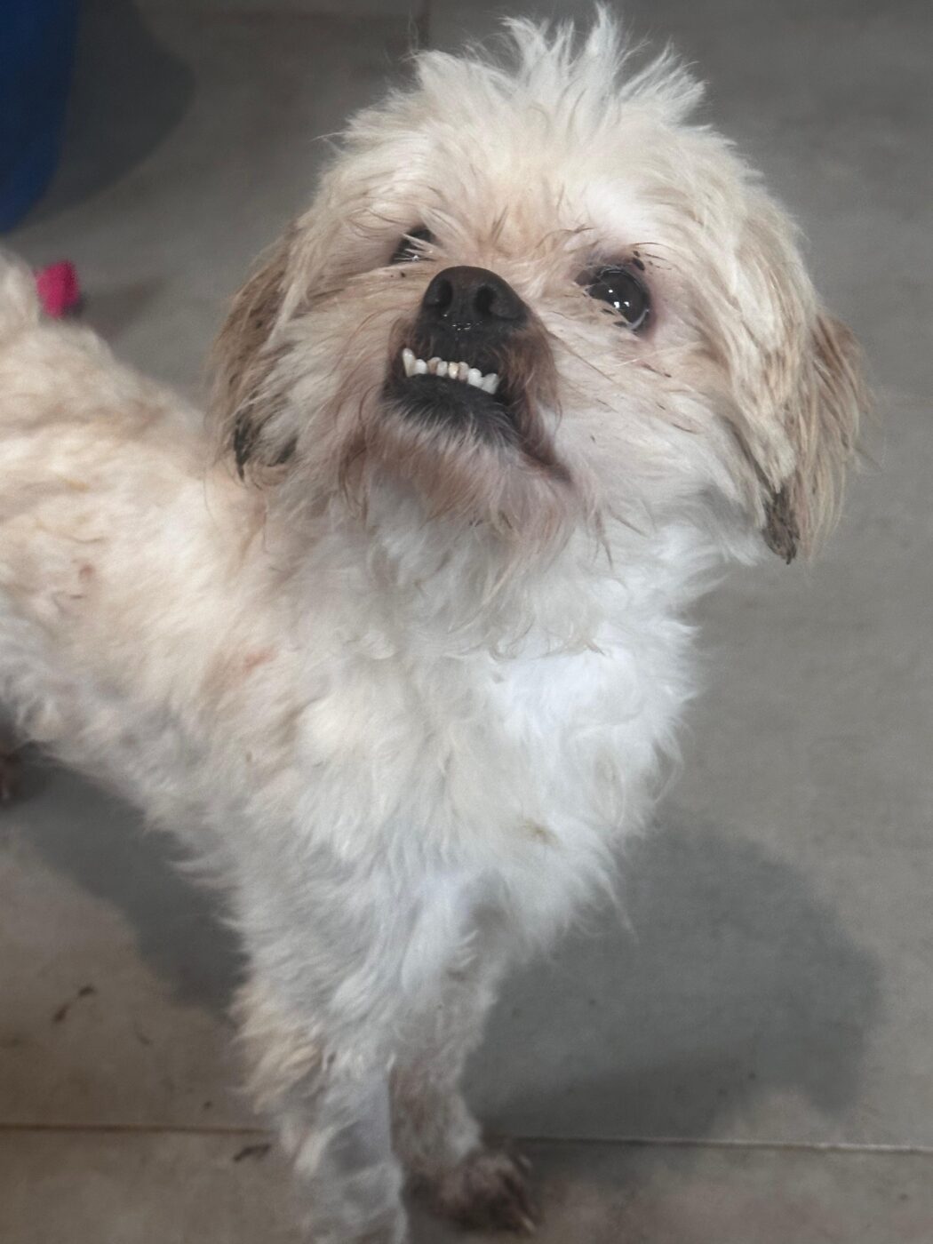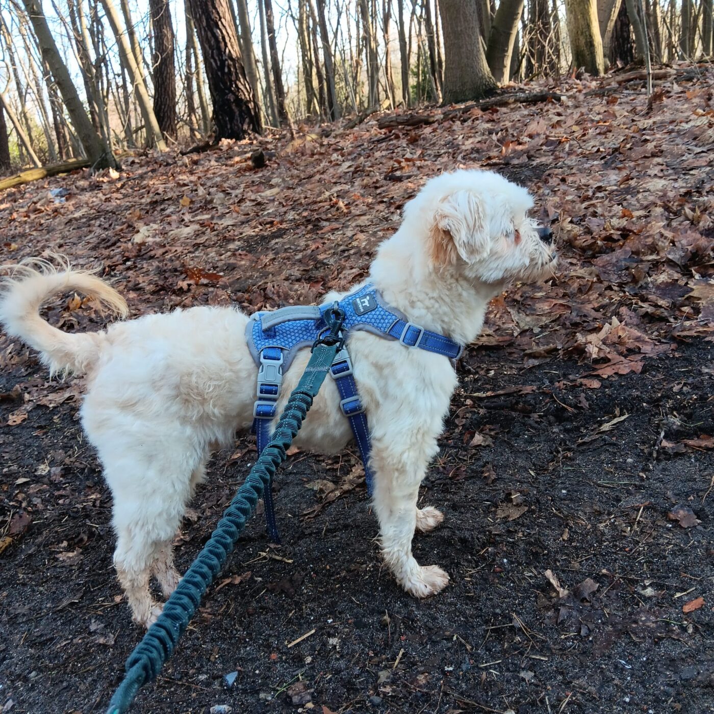 Bij binnenkomst was zijn vacht ernstig verwaarloosd, vol klitten. Hij is inmiddels geknipt en verzorgd, maar het verhaal daarachter is duidelijk: te weinig zorg, te weinig aandacht, te weinig liefde. Dat laat sporen na, zeker bij een hond als Bommel, die zo duidelijk gericht is op mensen.