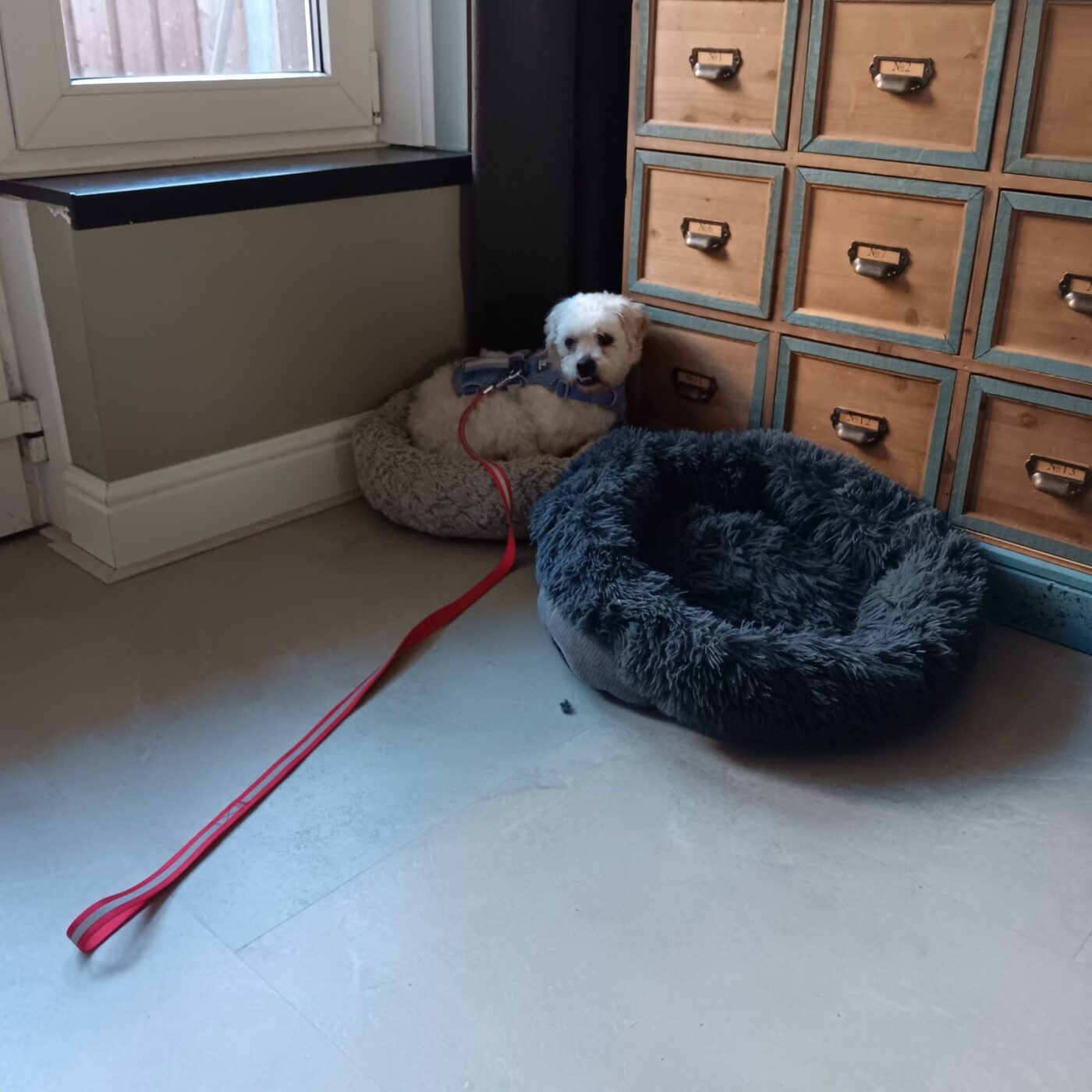 De eerste periode in de rescue was zwaar voor hem. Bommel was duidelijk diep onder de indruk van alles wat hem overkwam. Wekenlang durfde hij zijn kennel nauwelijks uit te komen. Hij bevroor, trok zich terug en leek zichzelf onzichtbaar te willen maken. Daarom is besloten hem over te plaatsen naar de woning, waar hij meer rust en nabijheid kreeg.