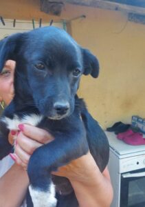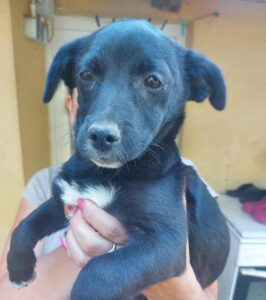 Schattige Bonnie is samen met haar zusjes en moeder door vrijwilligers van onze partnerorganisatie in Roemenië gevonden op een open veld.
