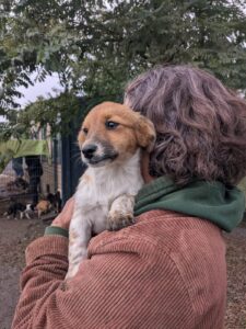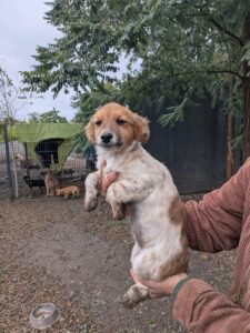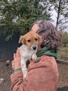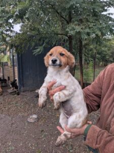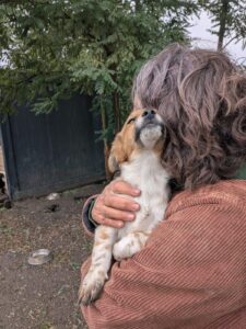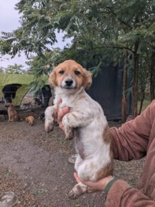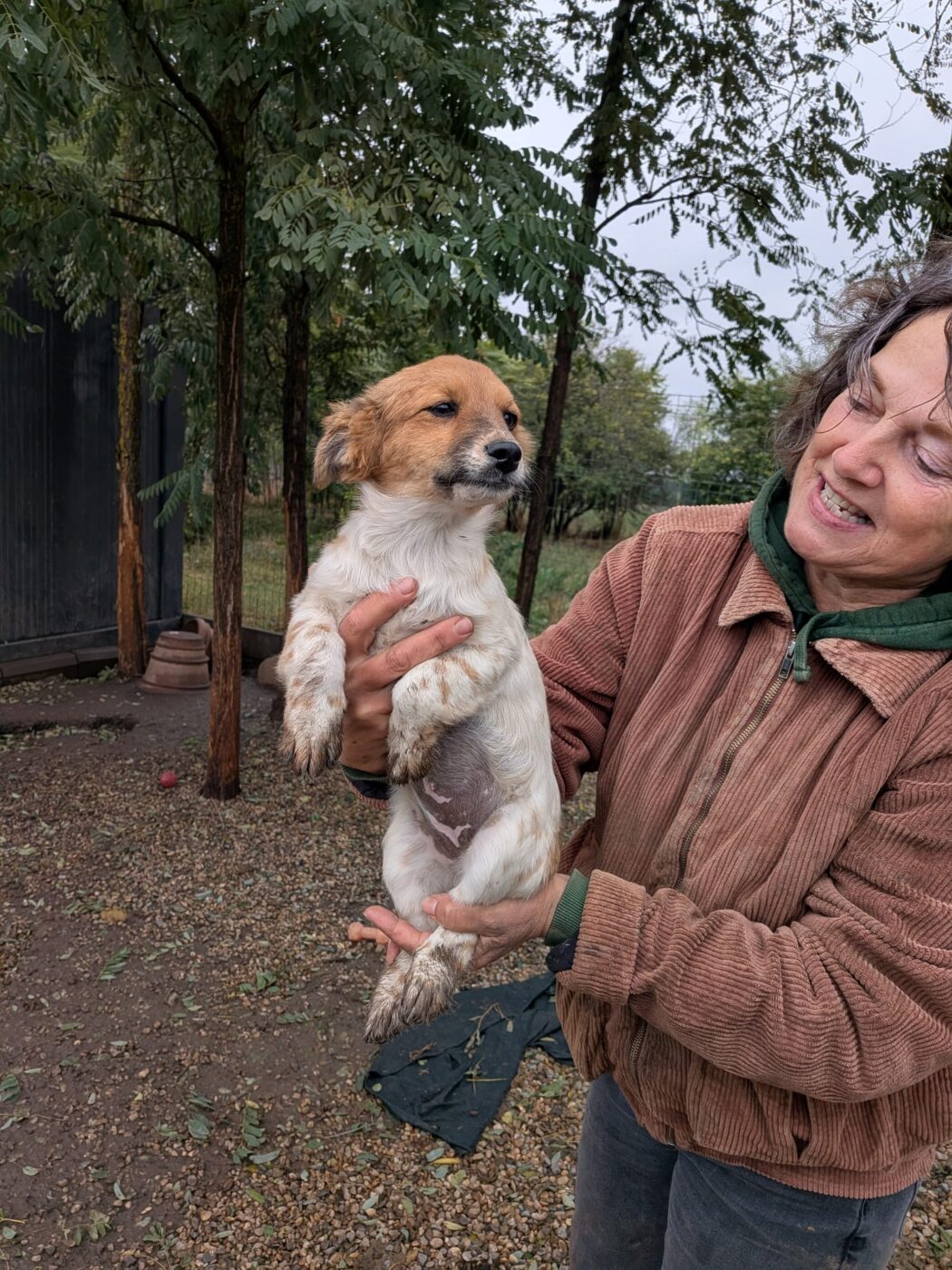 Bonte en haar nestgenootjes zijn in Roemenië achtergelaten in het staatsasiel. Voor een jonge pup is dat misschien wel de meest ellendige plek om terecht te komen: koud, overbevolkt en zonder de warmte en zorg die een pup juist zo hard nodig heeft. Gelukkig werd Bonte al snel opgepikt door een vrijwilliger van onze partnerrescue en mocht ze daar veilig onderdak krijgen.