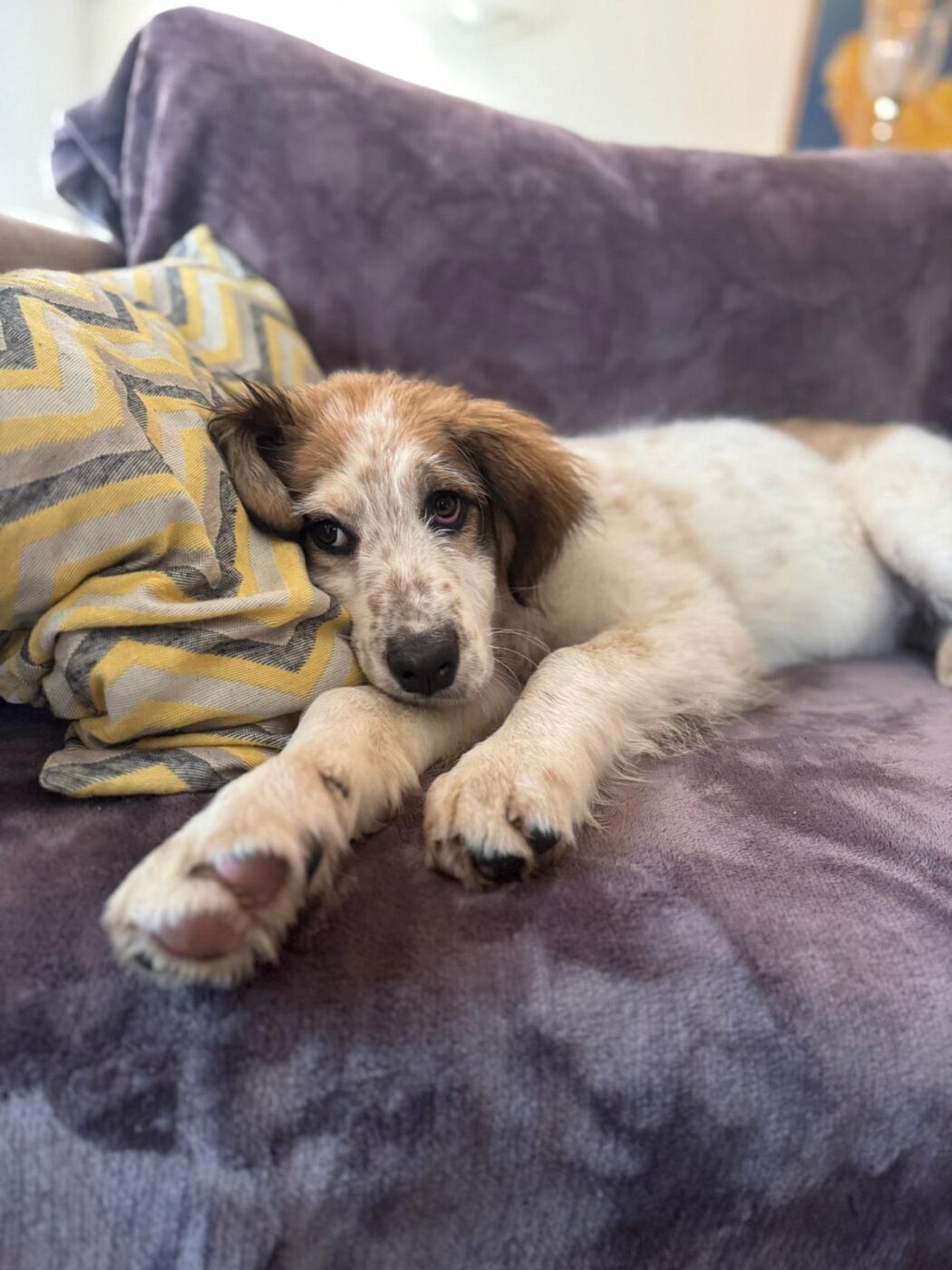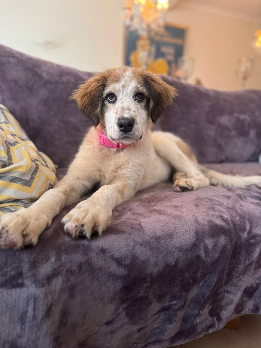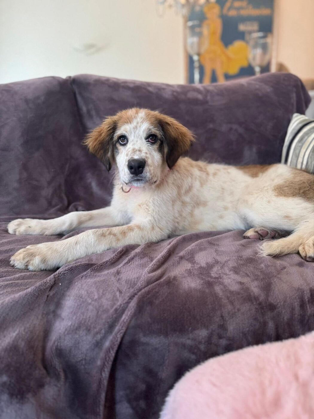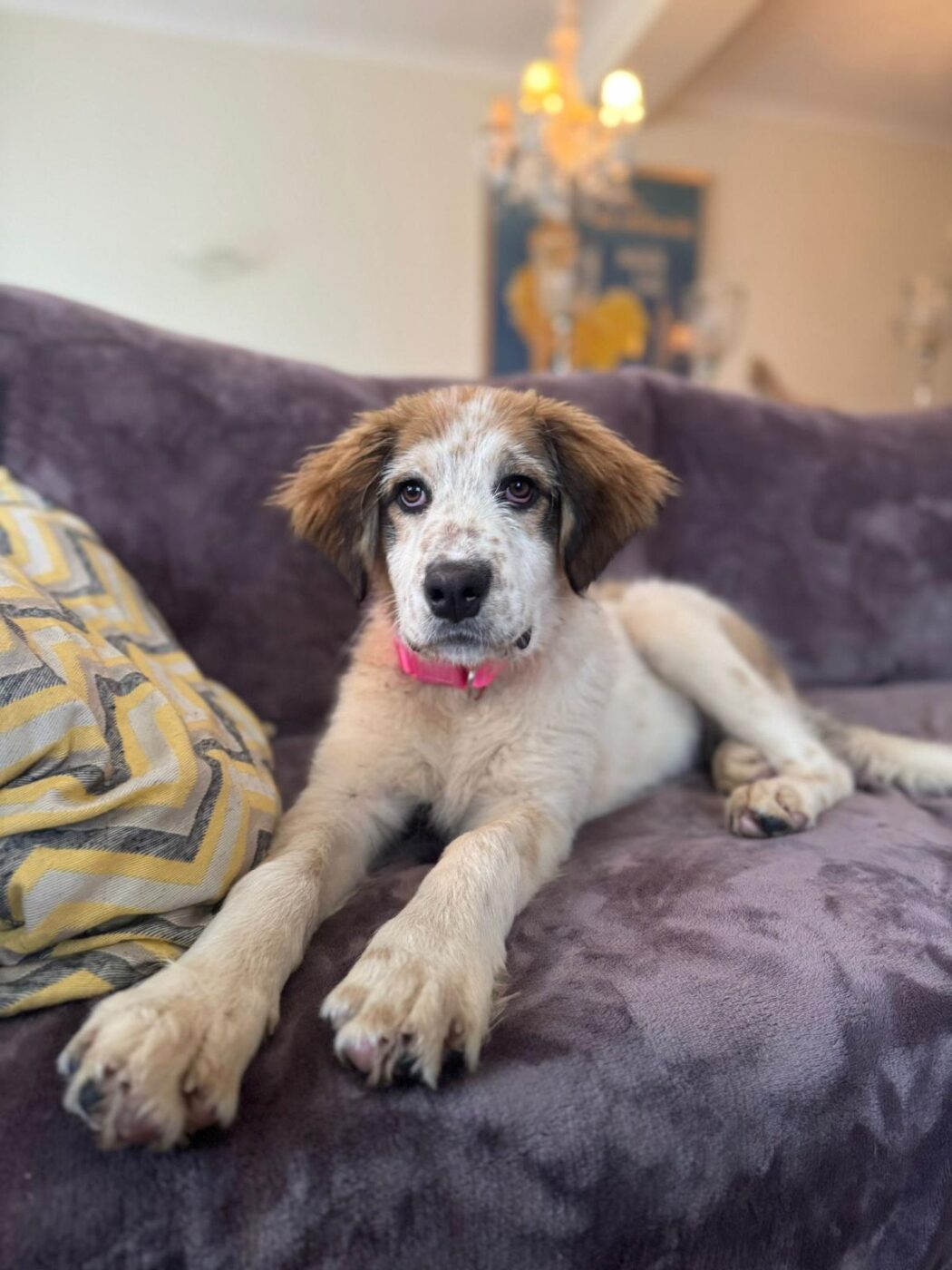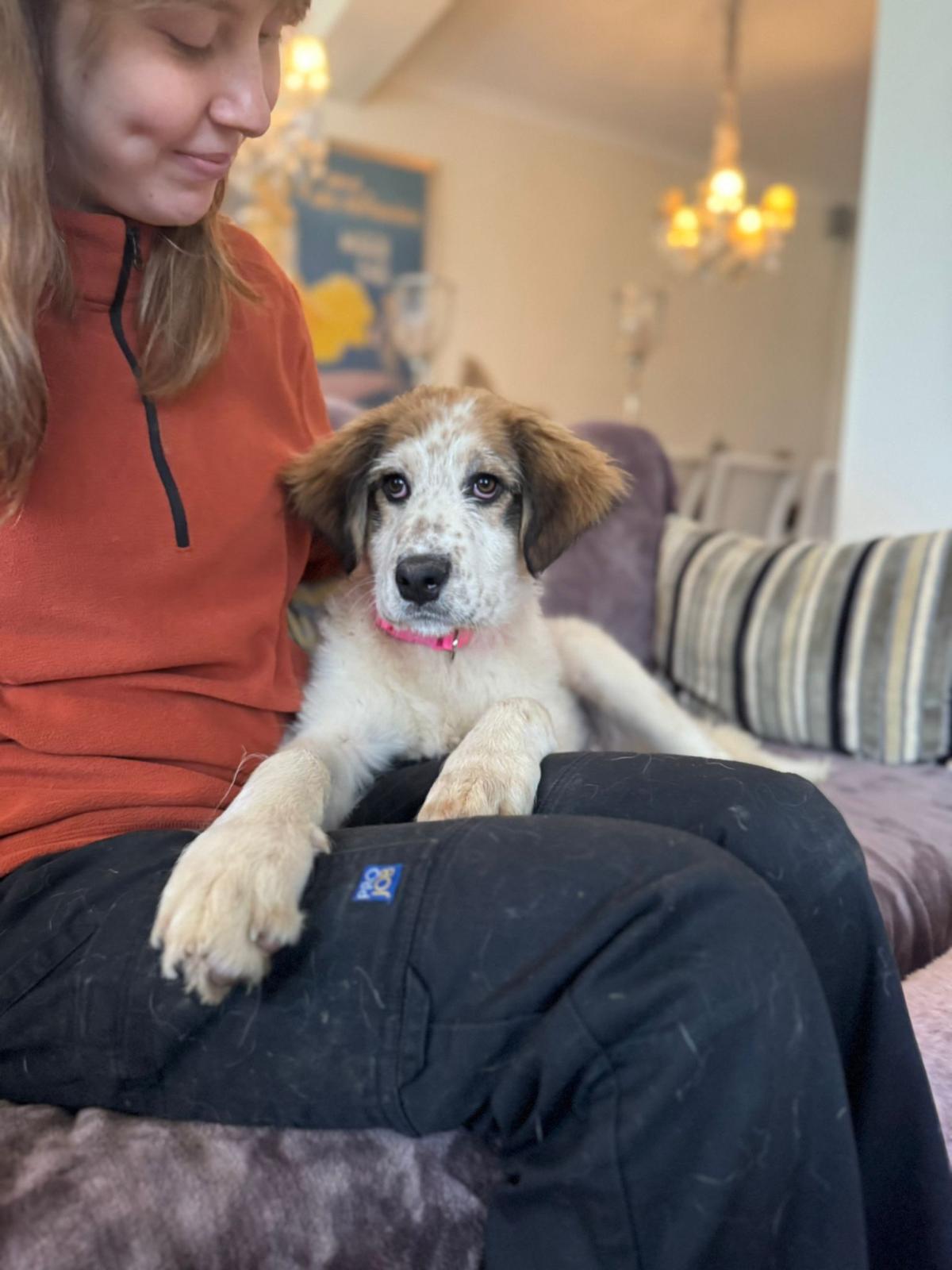 Brigitte draait heerlijk mee. Ze ravot, rent en speelt met de andere honden, zoekt het zonnetje op voor een dutje en kan opvallend goed ontspannen voor haar leeftijd. Ze is geen opdringerige of overdreven drukke pup. Ze heeft een mooie, kalme energie. Ze kijkt eerst even, voelt aan wat er gebeurt en sluit dan ontspannen aan. Dat maakt haar prettig in omgang, ze hoeft zichzelf niet continu te bewijzen. Brigitte is sociaal en gaat respectvol met alle andere honden om. Maar mensen vindt zij stiekem leuker… zij vindt kroelen en knuffelen heerlijk. Ze is bovendien prachtig om te zien, met haar nog wat fluffy vacht en zachte uitdrukking. Een aandoenlijk meisje, maar wel eentje die straks uitgroeit tot een grote hond.