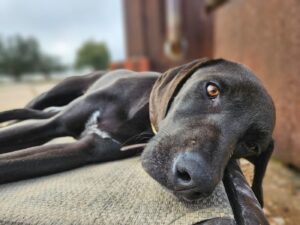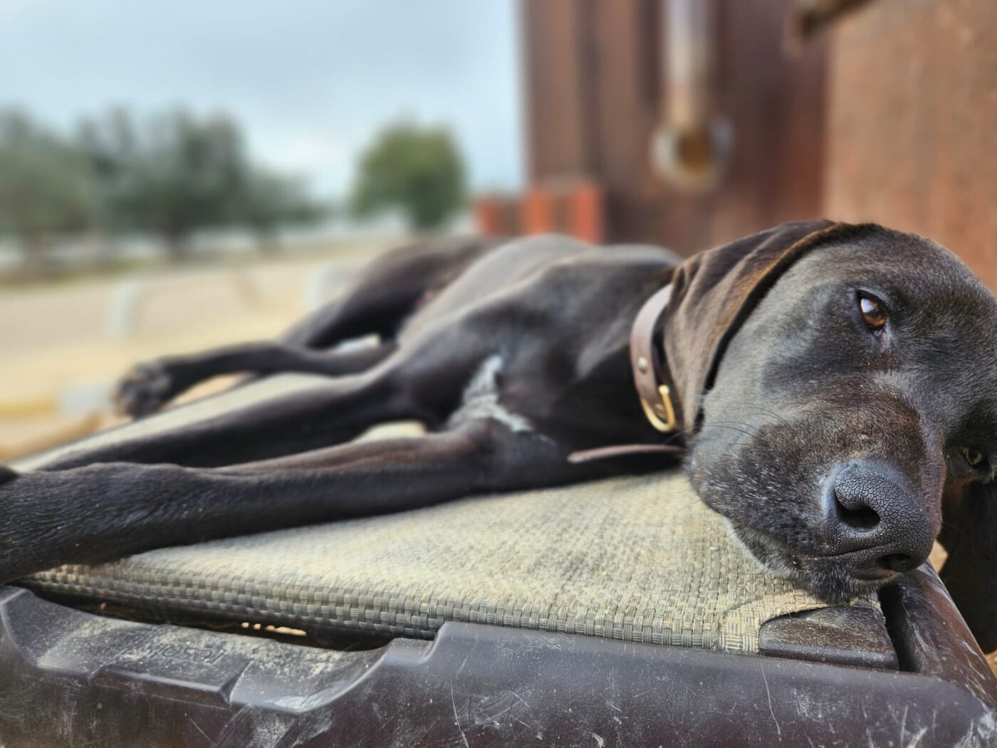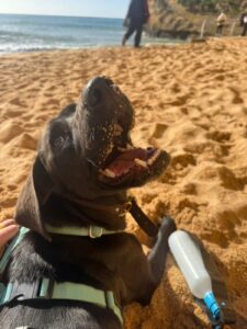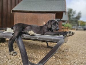 Als hij even aandacht krijgt van een vrijwilliger en een aai over zijn bol geniet hij daar volop van en is Bruno’s dag al goed! Vrijwilligers wandelen dagelijks met de honden aan de riem buiten het terrein van de lokatie, dus dat wordt al geoefend. Bruno kan soms flink aan de riem trekken, dus daar wordt aan gewerkt en hij laat al mooie verbeteringen zien, geven de vrijwilligers aan. Ook mag hij af en toe in de vrijwilligerswoning logeren, en dan komt zijn knuffelige en brave karakter goed naar boven. Zindelijk is Bruno ook.