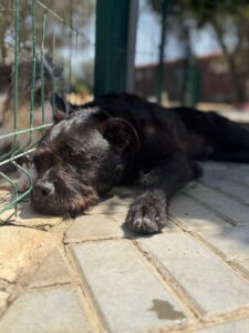 Inmiddels verblijft hij bij onze rescuepartner in Portugal, op de Quinta. Daar liet hij meteen zien wie hij echt is: een vrolijke, sociale jonge hond die het leven met beide poten aangrijpt. Hij sloot zich zonder moeite aan bij de roedel en maakte al op zijn eerste avond een vriendje. Spelen doet hij graag, maar hij kan net zo goed genieten van een rustig plekje in de schaduw waar hij even helemaal tot zichzelf komt.