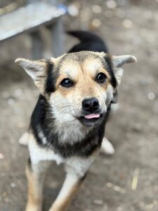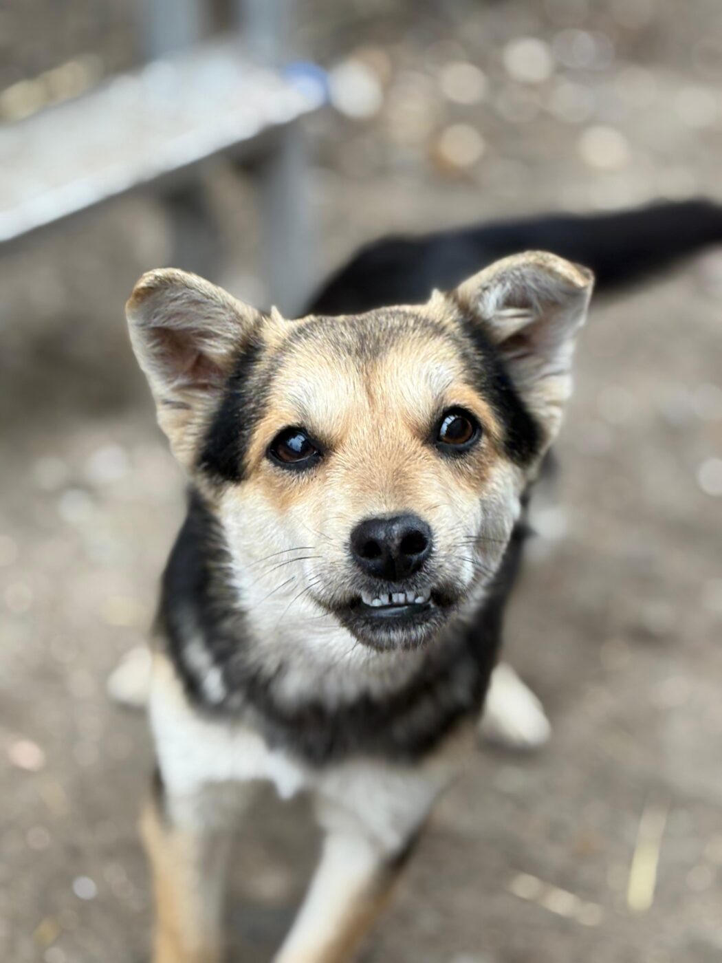 Het meisje dat samen met Sadie langs de weg liep, viel meteen op. Ze oogt een beetje als een pup, maar is dat allang niet meer. Juist dat maakt haar zo aandoenlijk: klein, zacht en met een blik die je direct raakt. Candy is een heel lief en gevoelig hondje, met een rustig en vriendelijk karakter.