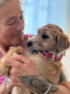 Dit guitige meisje kwam samen met haar zusjes Lou en Ellie bij onze rescueorganisatie in Portugal terecht. Hun baasjes konden helaas niet langer voor hen zorgen en hebben de pupjes bij het staatsasiel afgegeven. Gelukkig konden wij ze meteen ophalen, zodat ze veilig waren en een nieuwe start konden maken.