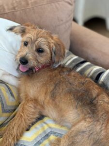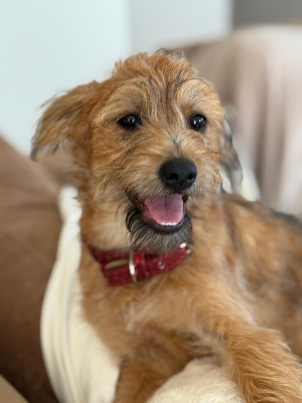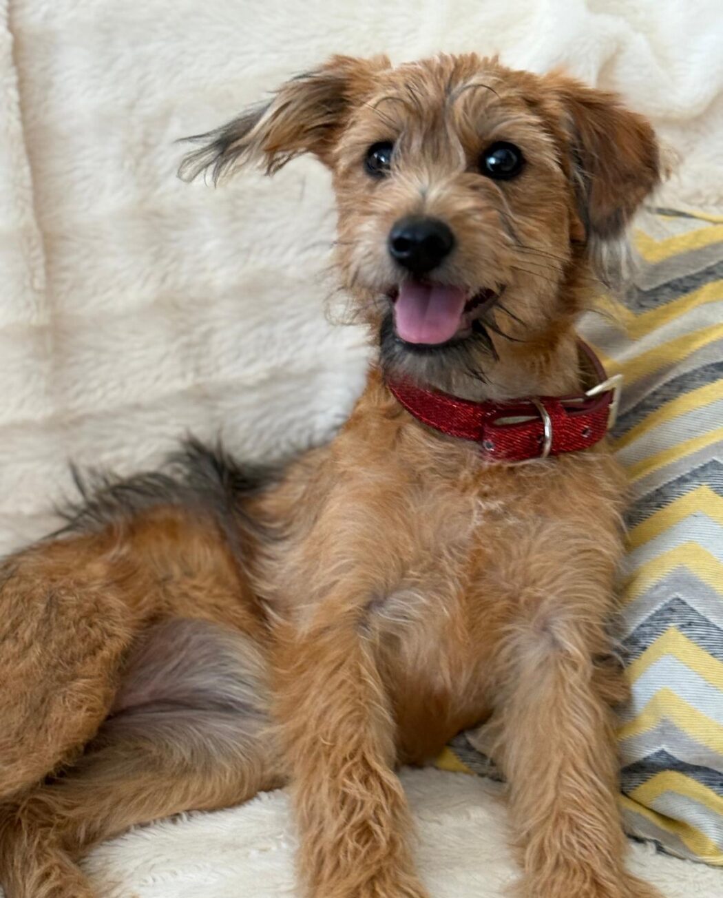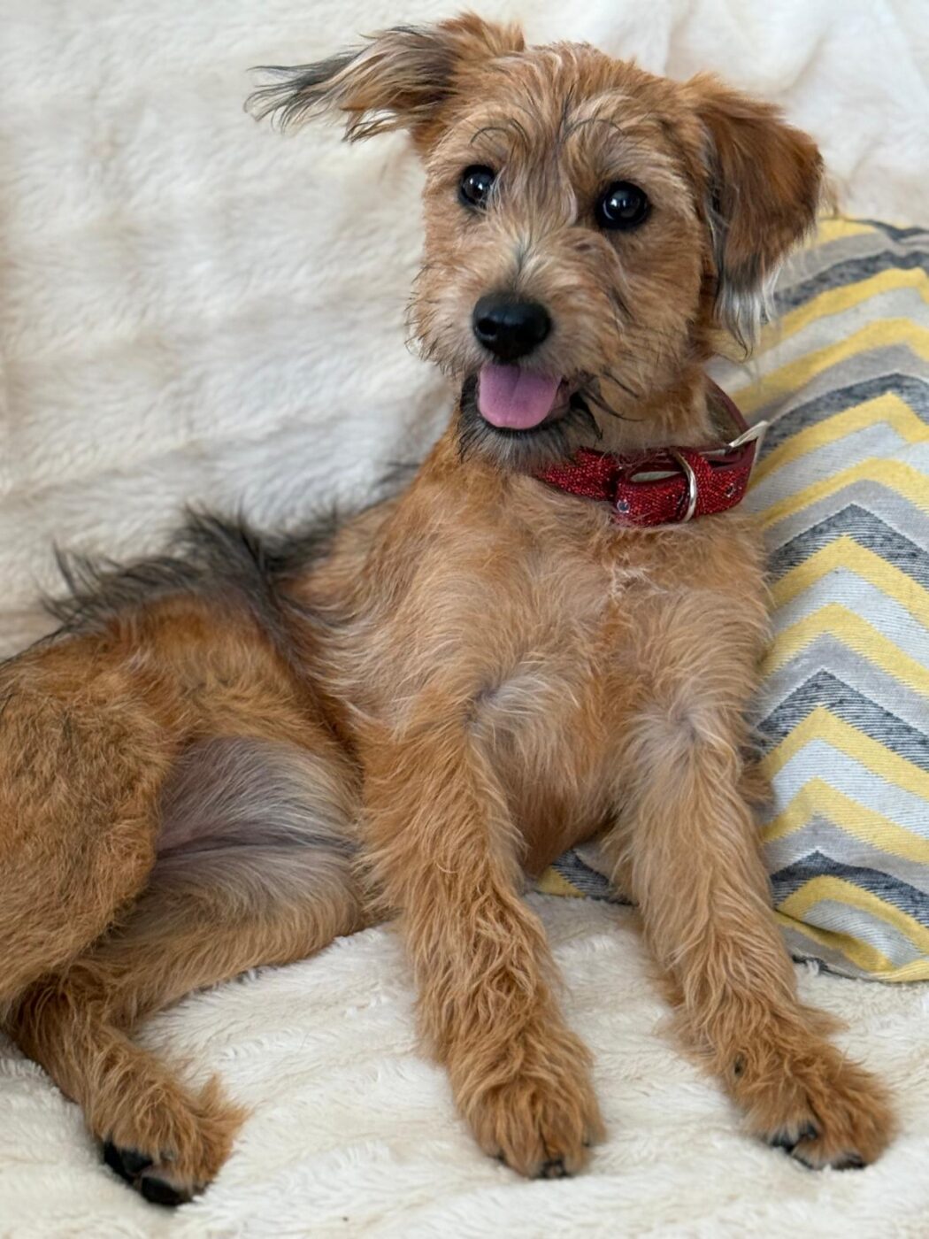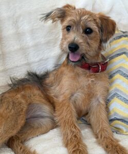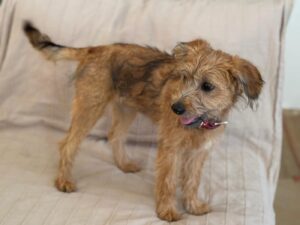 Carlotta is een teefje met de geschatte geboortedatum van 26 maart 2025 en ze zal circa 38 centimeter groot worden. Ze weegt nu nog geen 7 kilo. (9/25)