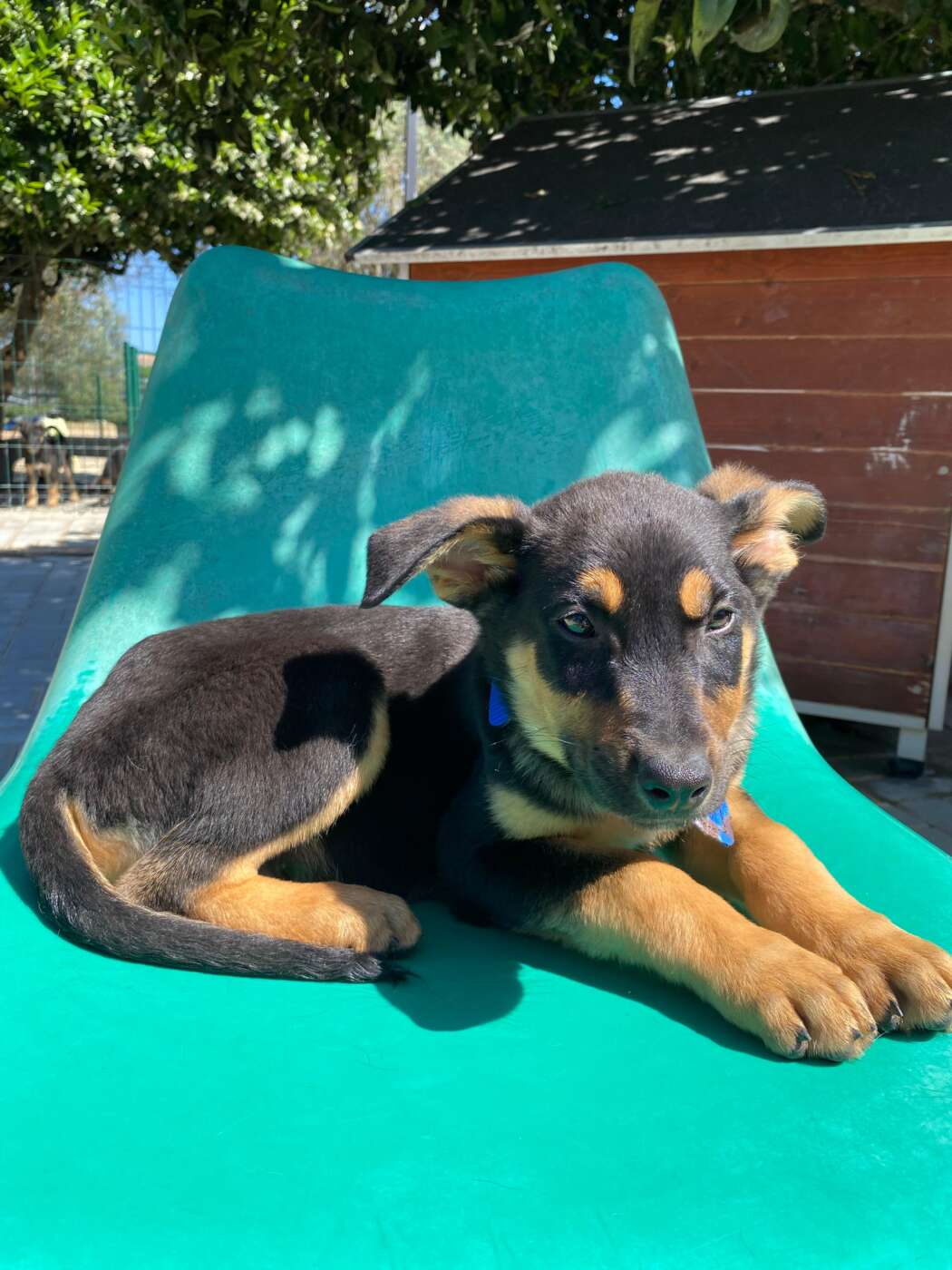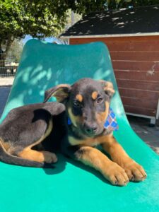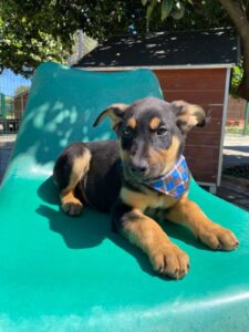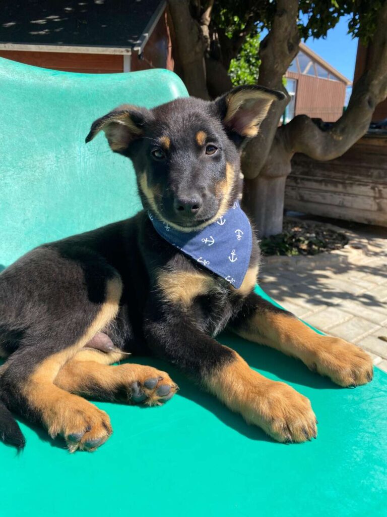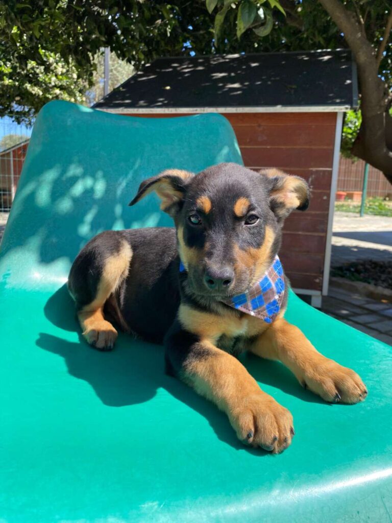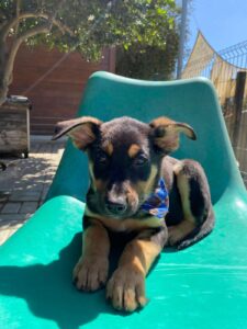 Chase, een van die pupjes, is een vrolijke, leergierige reu. Hij loopt graag kwispelend achter de vrijwilligers aan, alsof hij hun schaduw is. Spelen is zijn grote passie: hij rolt in het gras, ravot met zijn nestgenootjes, en zoekt daarna lekker een zonnig plekje om languit te liggen. In de vrijwilligerswoning is hij een voorbeeldig ventje: hij leert hoe een huis voelt, hoe je wandelt aan de lijn, en hoe knuffels van mensen iets prachtigs zijn. Chase is slim, lief en sociaal. Chase is inmiddels klaar om zijn tijdelijke huis voor zijn forever home te verhullen.