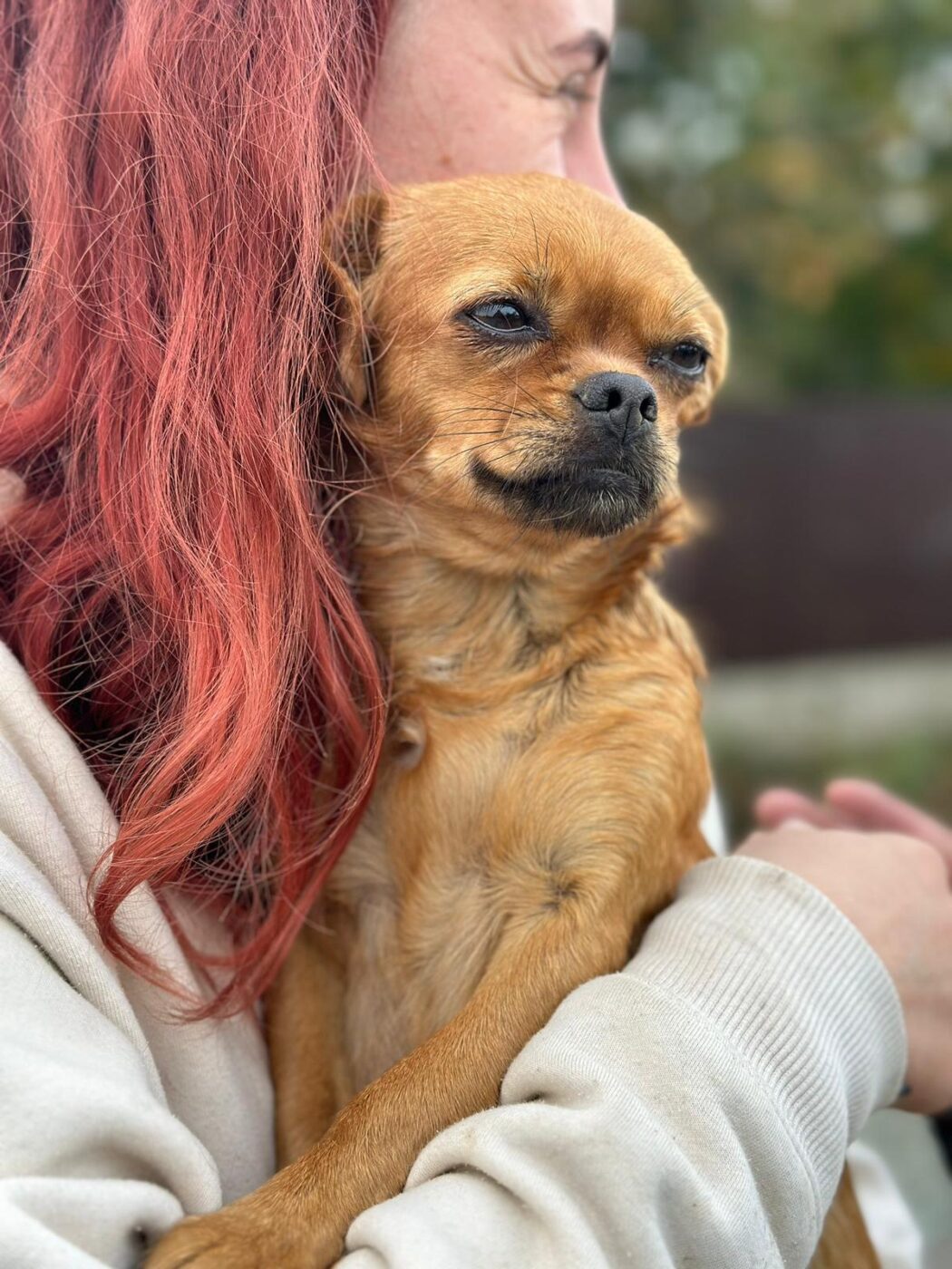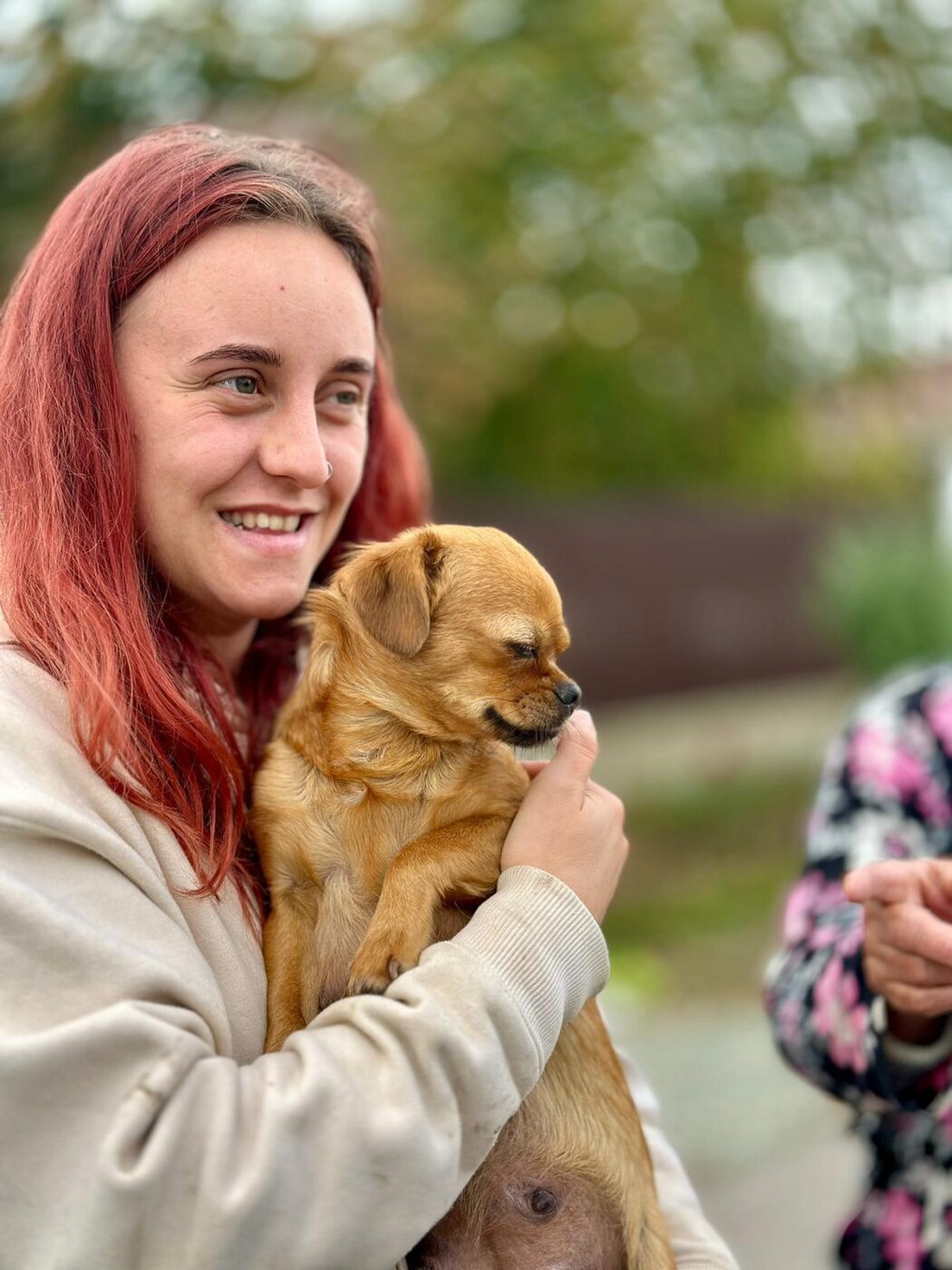 Voor zo’n klein hondje is een drukke kennel behoorlijk heftig en zelfs gevaarlijk. De geluiden, de spanning, de grotere honden, het is simpelweg te veel voor een teefje van haar formaat. In de vrijwilligerswoning komt ze tot rust en zie je hoe haar staart voorzichtig weer omhoog komt.