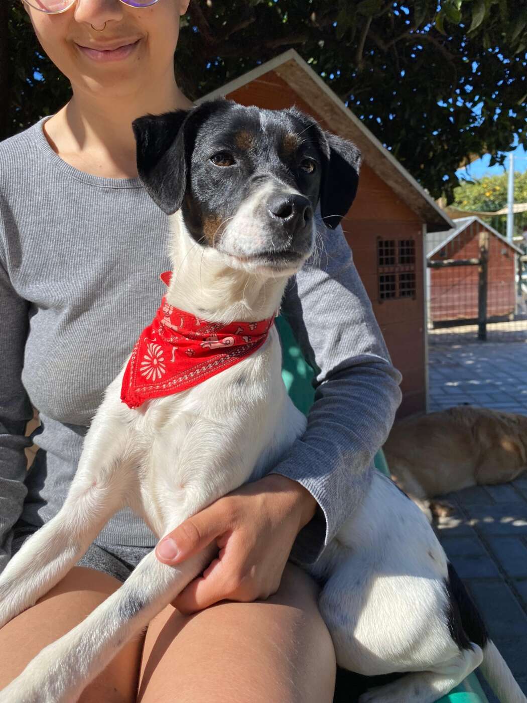 Cloë werd gezien door vrijwilligers in een Portugees staatsasiel. Een plek waar het dagelijks leven draait om overleven, lawaai en stress. Voor een jonge hond als zij is dat geen omgeving om in op te groeien. We hebben haar daarom meteen meegenomen, weg uit die situatie, zodat ze de kans krijgt op een normaal leven.