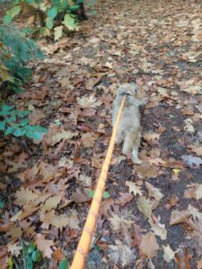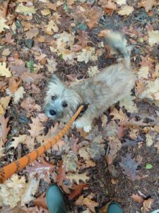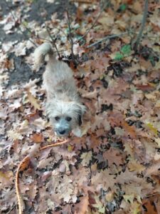 Ollie is een vrolijke, jonge hond van zo’n 2,5 jaar oud die het leven met volle teugen beleeft. Hij is leergierig, slim en wil graag alles goed doen voor zijn baas. In korte tijd heeft hij al heel wat geleerd: hij kent de basiscommando’s, loopt netjes mee aan de lijn en is zindelijk. Buiten geniet hij van lange wandelingen en snuffelrondes door het bos — vooral nu met de herfstbladeren is dat één groot avontuur voor hem.