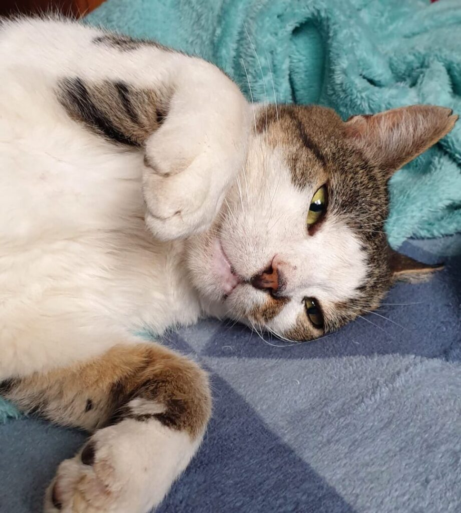 Deze kater heet Dean, hij is ongeveer 4 jaar oud en gecastreerd. Vrijwilligers van onze rescue organisatie in Roemenië kwamen hem tegen op een verlaten terrein. Dean is een lieve kat, die al spint en op zijn rug draait alleen al als je naar hem kijkt. Dean moet echter wel als enige kat in het gezin zijn, omdat hij niet goed met andere katten overweg kan waardoor de ruimte in de opvang nu wat beperkt is. Hoe goed er nu voor hem gezorgd wordt, hij verdient beter. Dean is een gelukkige kat als hij lekker kan genieten van plekken in huis waar hij rustig kan liggen. Hij houdt ervan om geaaid, geknuffeld en vooral gekust te worden. Hij is een grote kat, hij is lang en hoog, hij weegt ongeveer 6 kg. Heb jij plaats in je hart voor deze lieve grote jongen reageer dan op hem.