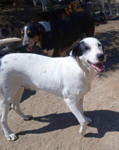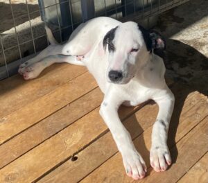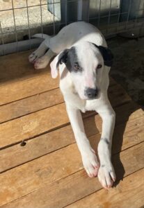 Dodde is samen met zijn broer Larson bij onze partnerorganisatie in Griekenland terechtgekomen. Zwervend op straat liepen ze, toen ze opgemerkt werden. Nu zitten ze veilig in de kennel, gelukkig. Ze vinden het maar vreemd dat ze nu niet meer overal heen kunnen lopen maar het is veel beter voor hun veiligheid, want de kans dat ze door andere honden gegrepen of aangereden worden is erg groot. We zoeken voor deze knapperd met zijn guitige koppie een fijne plek waar hij de tijd krijgt om te wennen aan zijn nieuwe leven. Dodde is een lieve, niet al te drukke mix reu met een geschatte geboortedatum van 6 augustus 2022 en een verwachte eindhoogte van ongeveer 42 cm.(11/22)