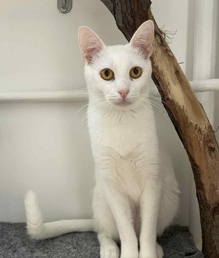 Emilio is een gecastreerde kater met een geschatte geboortedatum van 10 juli 2024 en hij is ongeveer 24 cm hoog. (07/25)
