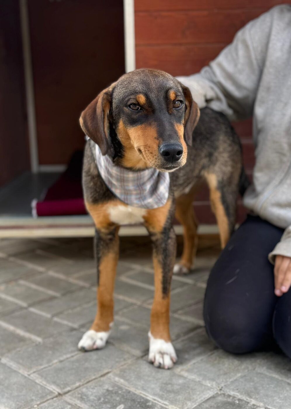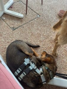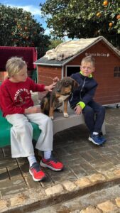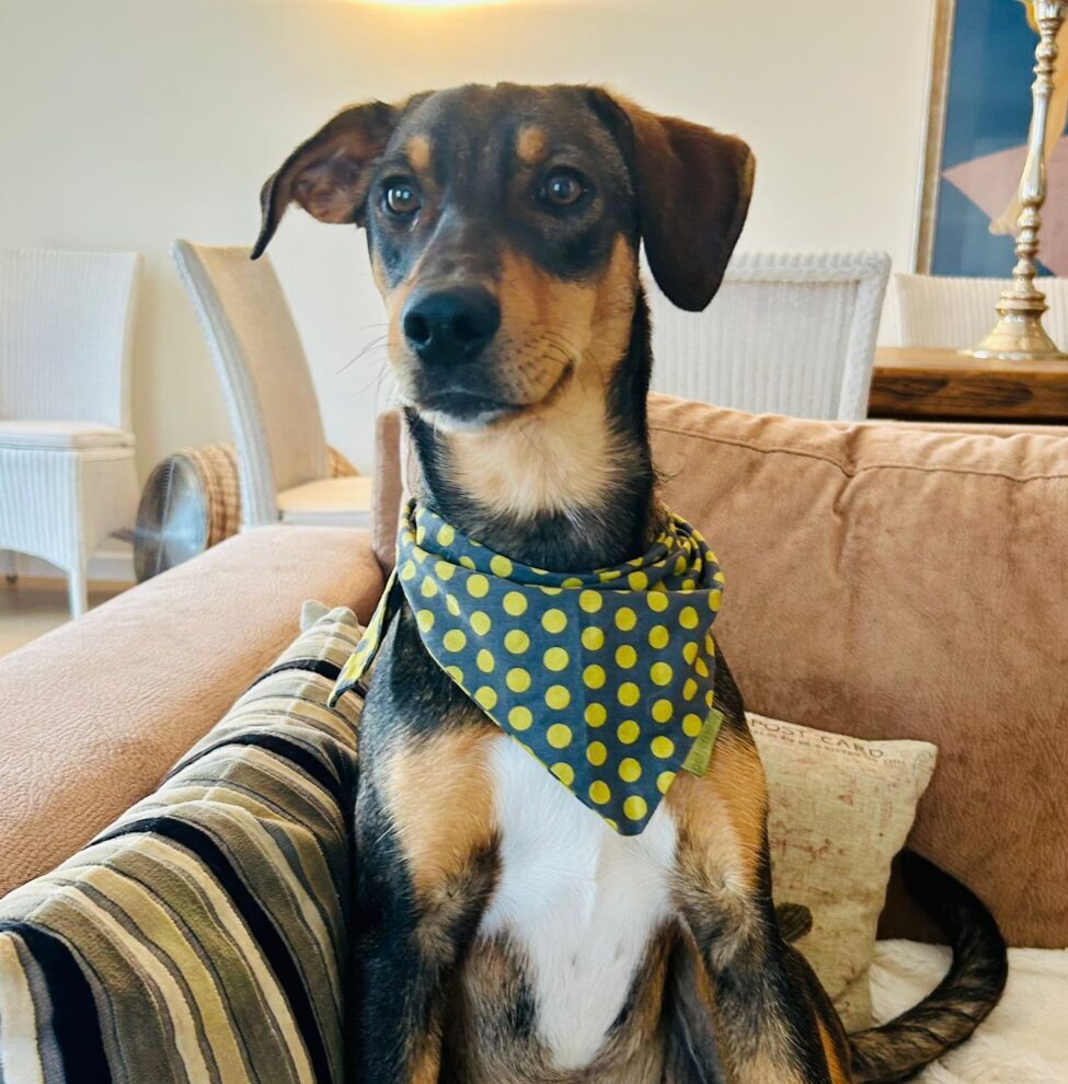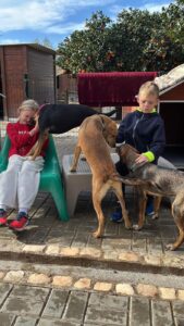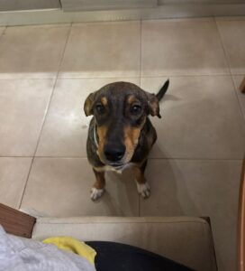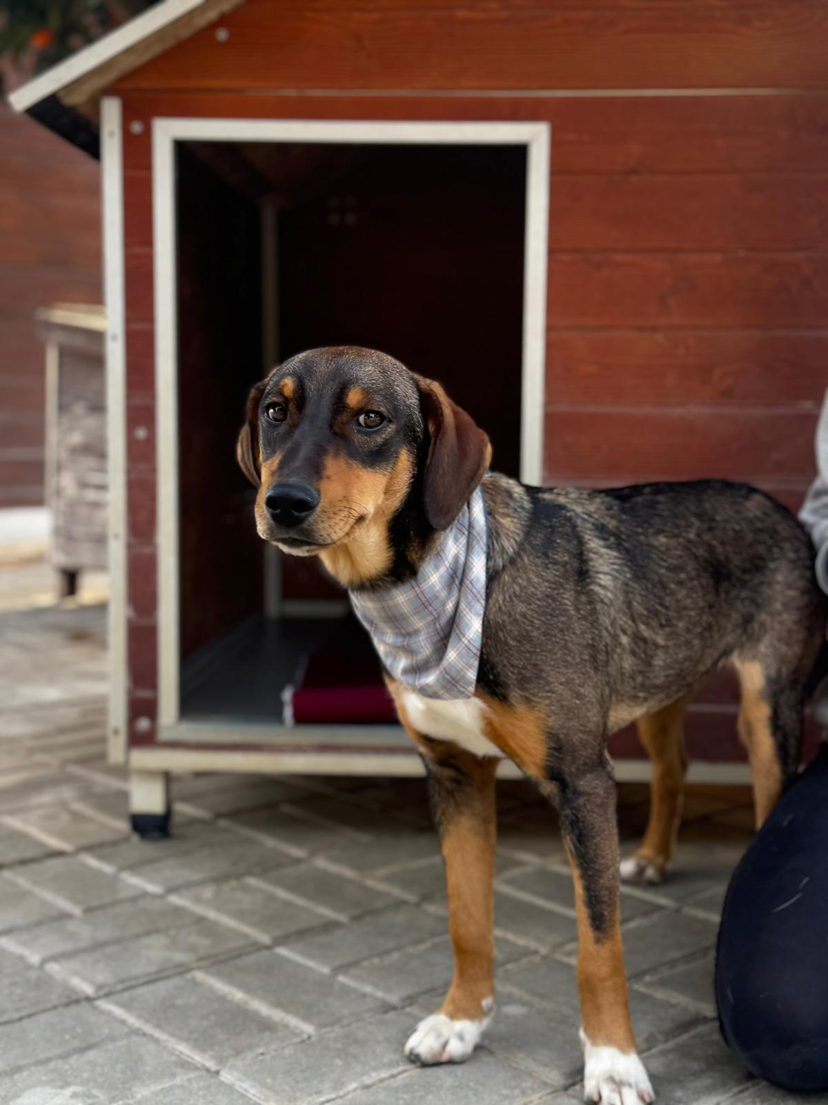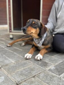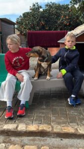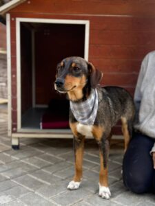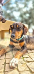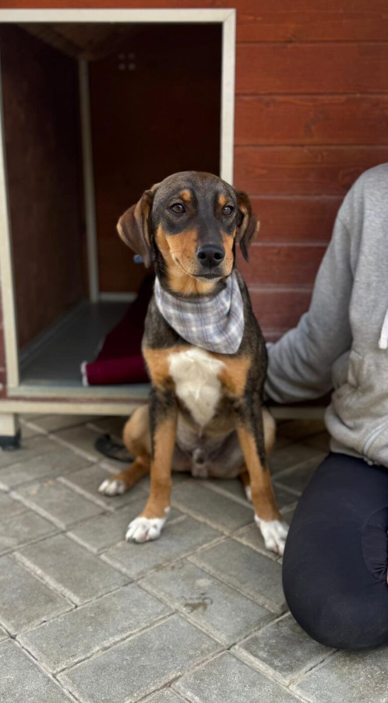 Deze knul heet Ernie, één van de twee broertjes die samen uit het staatsasiel in Portugal zijn gekomen. Daar zat hij vol energie maar had hij nauwelijks ruimte om echt hond te kunnen zijn. Sinds zijn aankomst op de Quinta zie je hem letterlijk opbloeien: hij geniet van de vrijheid, het bewegen, spelen en gewoon weer even écht leven.