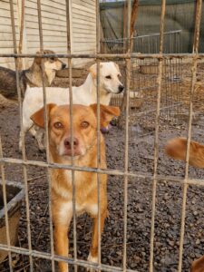 Fanny is zachtaardig en ontzettend lief. Zelfs in spannende situaties laat ze geen agressie zien – ze snauwt of grauwt niet. Ze is eerder het “lulletje” in de roedel: ze weet vaak niet goed wat er van haar verwacht wordt en lijkt zichzelf wat verloren te voelen tussen de andere honden. Voor Fanny zou een kennel met oudere of dominantere honden echt te veel zijn; de kans is groot dat ze zich dan terugtrekt en vereenzaamt.