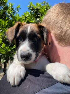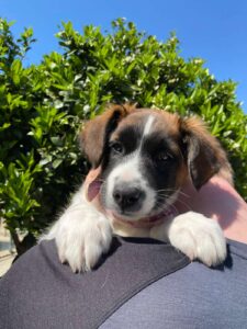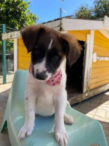 Finja, zo heet dit knappe en vrolijke meisje. Ze werd als piepklein pupje gevonden, zonder moeder, en volledig afhankelijk van hulp. Onze rescuer in Portugal heeft haar met de fles grootgebracht, en dat zie je terug in hoe zij naar mensen toe is: open, zelfverzekerd en enorm mensgericht.