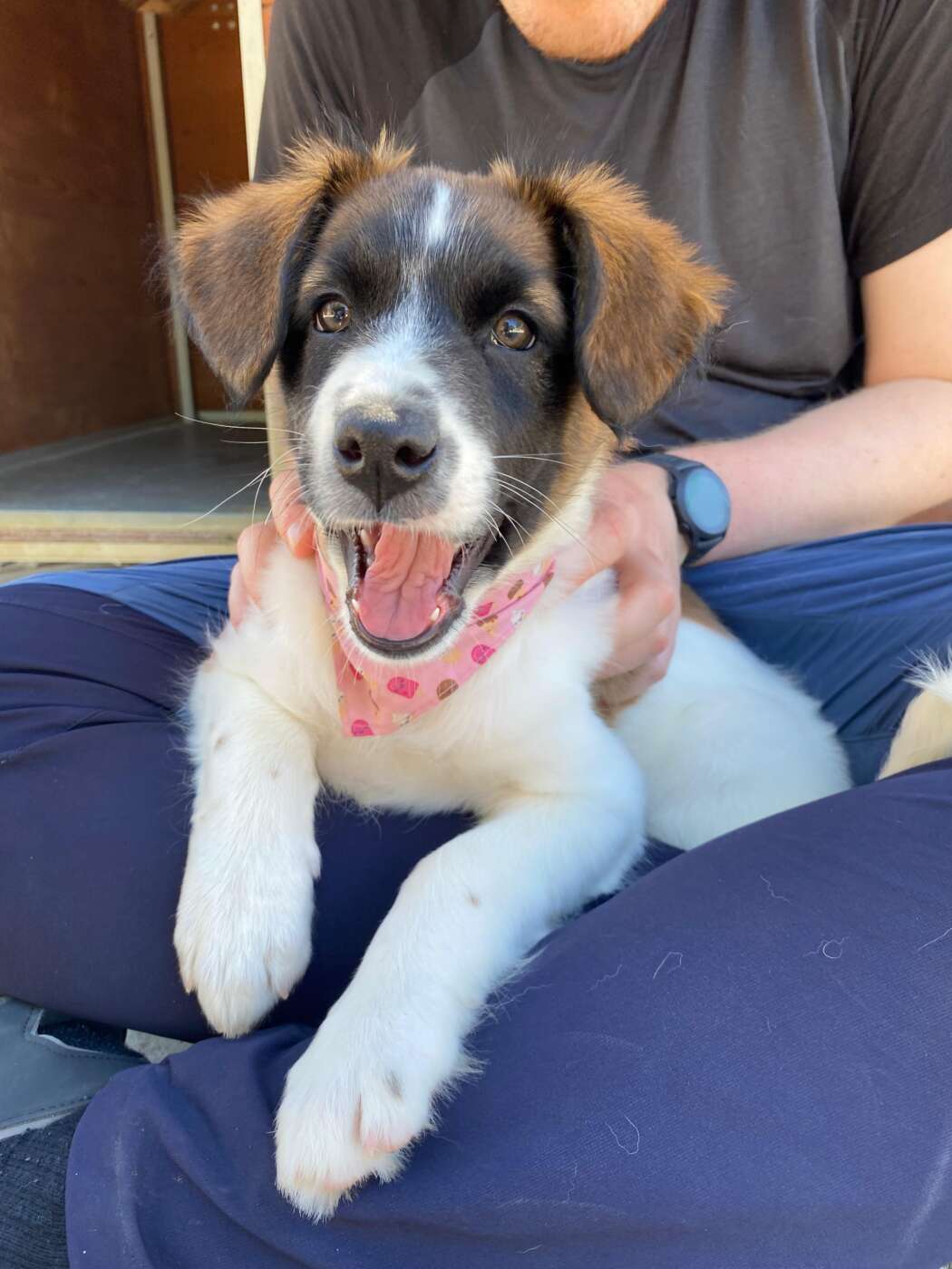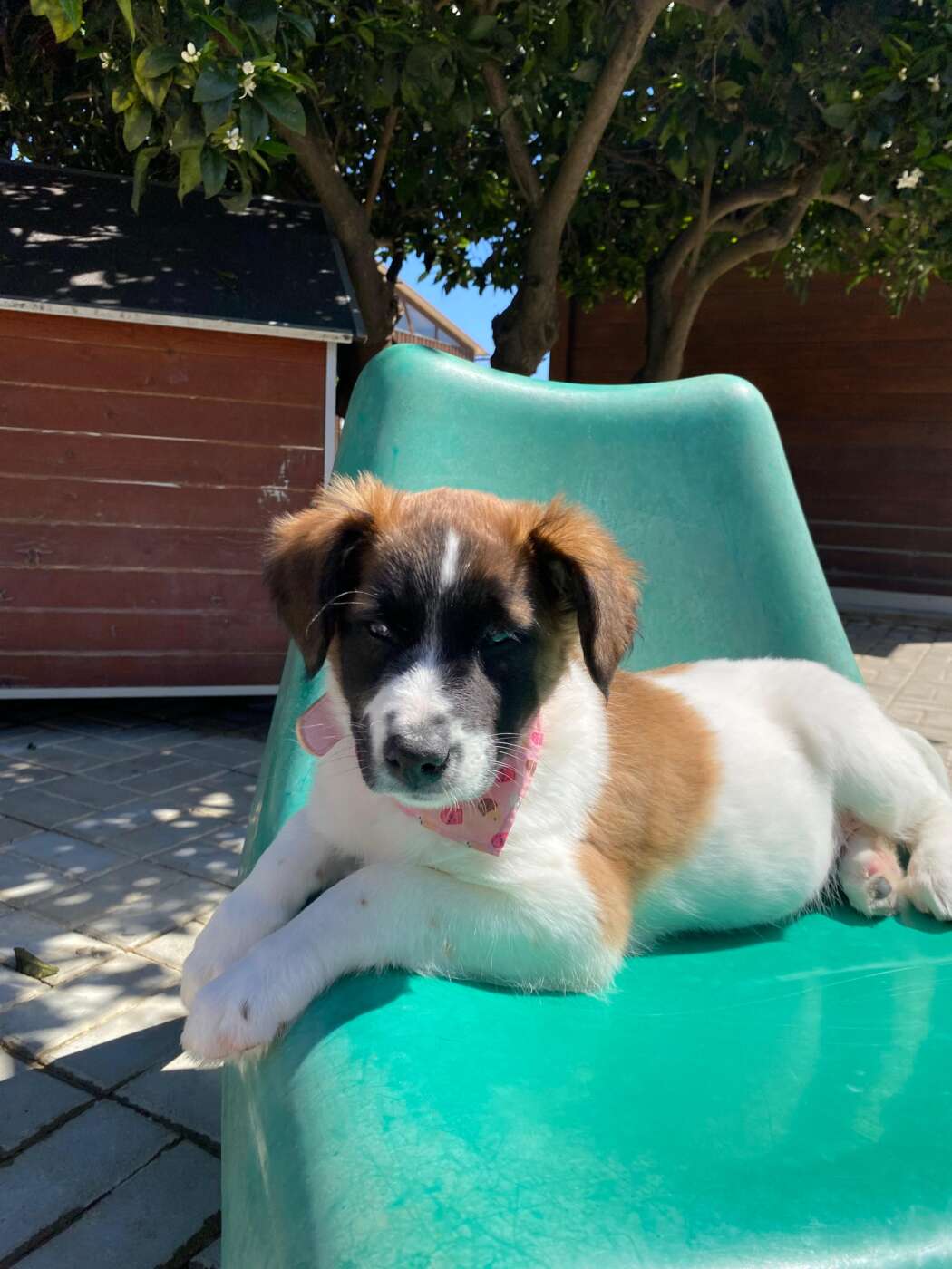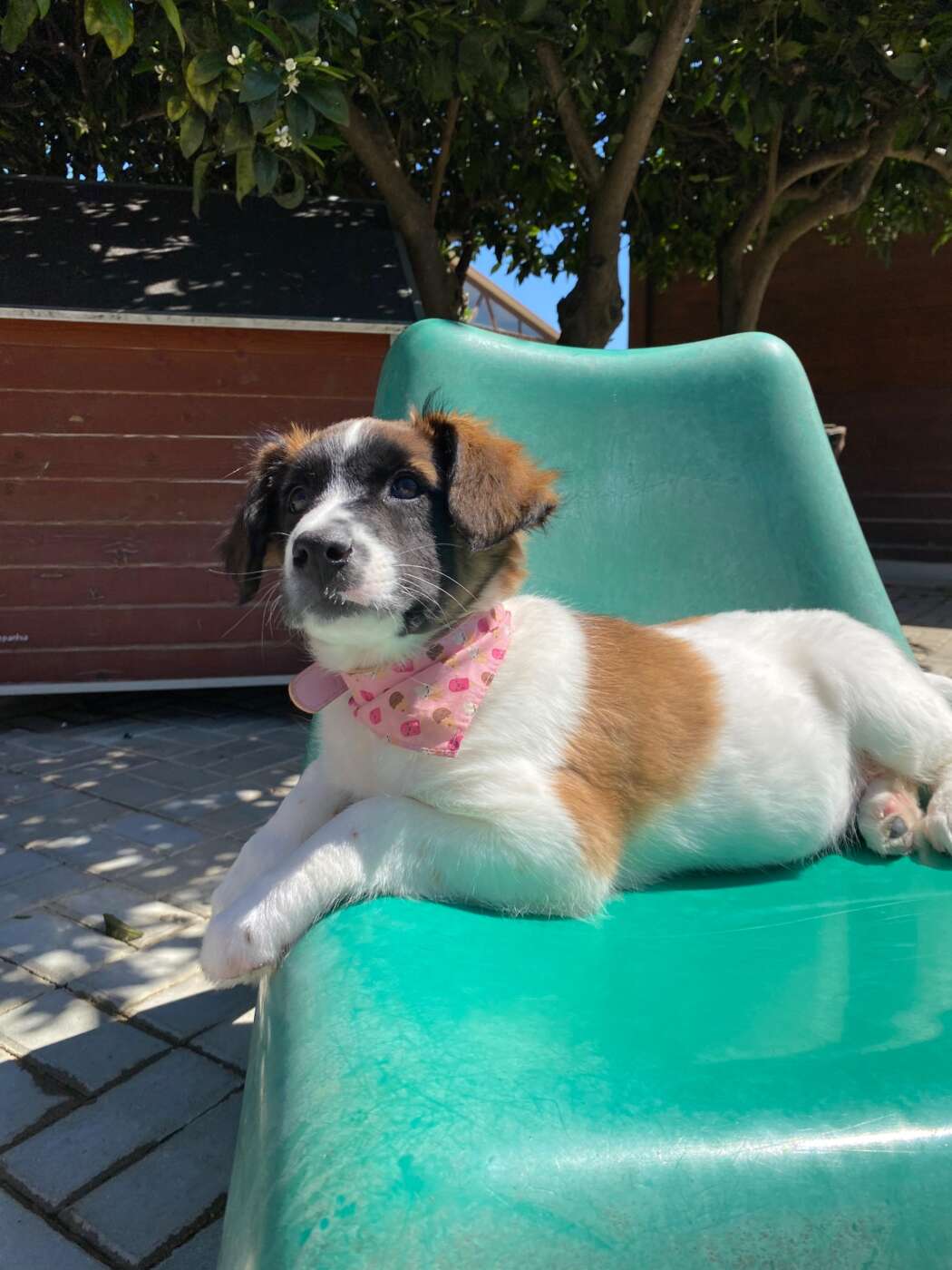 Finja, zo heet dit knappe en vrolijke meisje. Ze werd als piepklein pupje gevonden, zonder moeder, en volledig afhankelijk van hulp. Onze rescuer in Portugal heeft haar met de fles grootgebracht, en dat zie je terug in hoe zij naar mensen toe is: open, zelfverzekerd en enorm mensgericht.